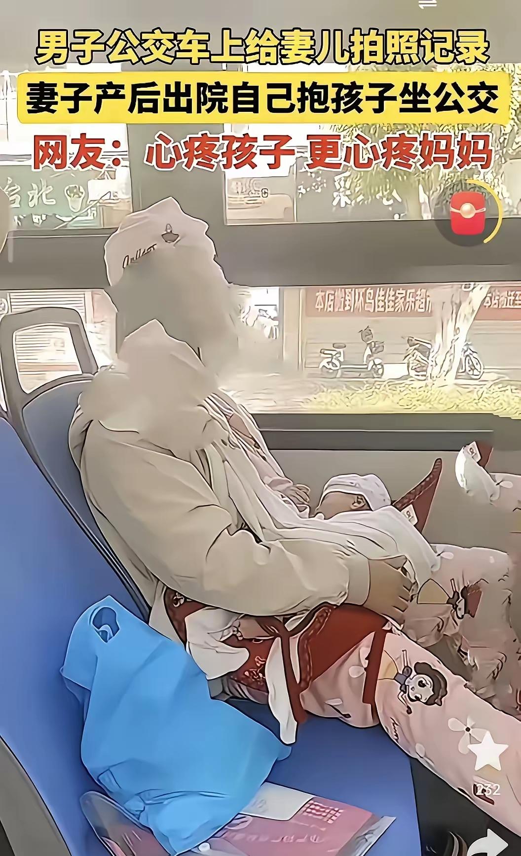 女子产后出院,自己抱着孩子坐公交车回家,老公坐在另一边拿出手机拍下了这一幕!