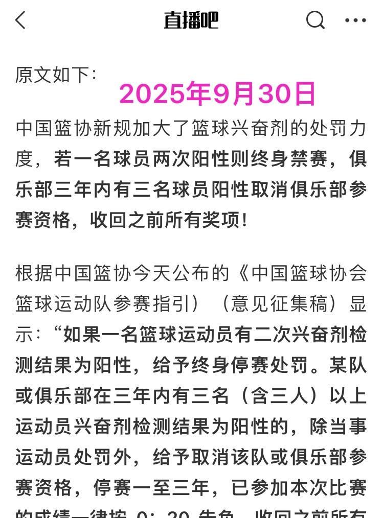 篮协朝令夕改,去年刚颁布的兴奋剂违规处罚条例貌似已经作废!据直播吧报道,资深媒体