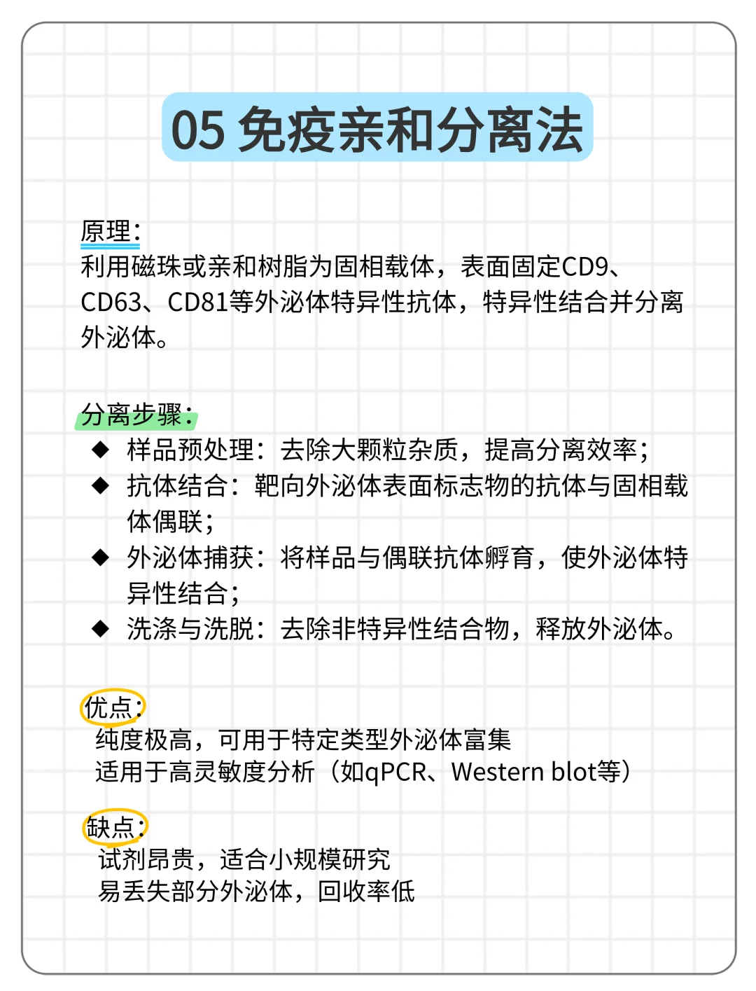 👉原理:利用磁珠或亲和树脂为固相载体,表面固定CD9、CD63、CD81等外泌体特异性抗体,特异性结合并分离外泌体。