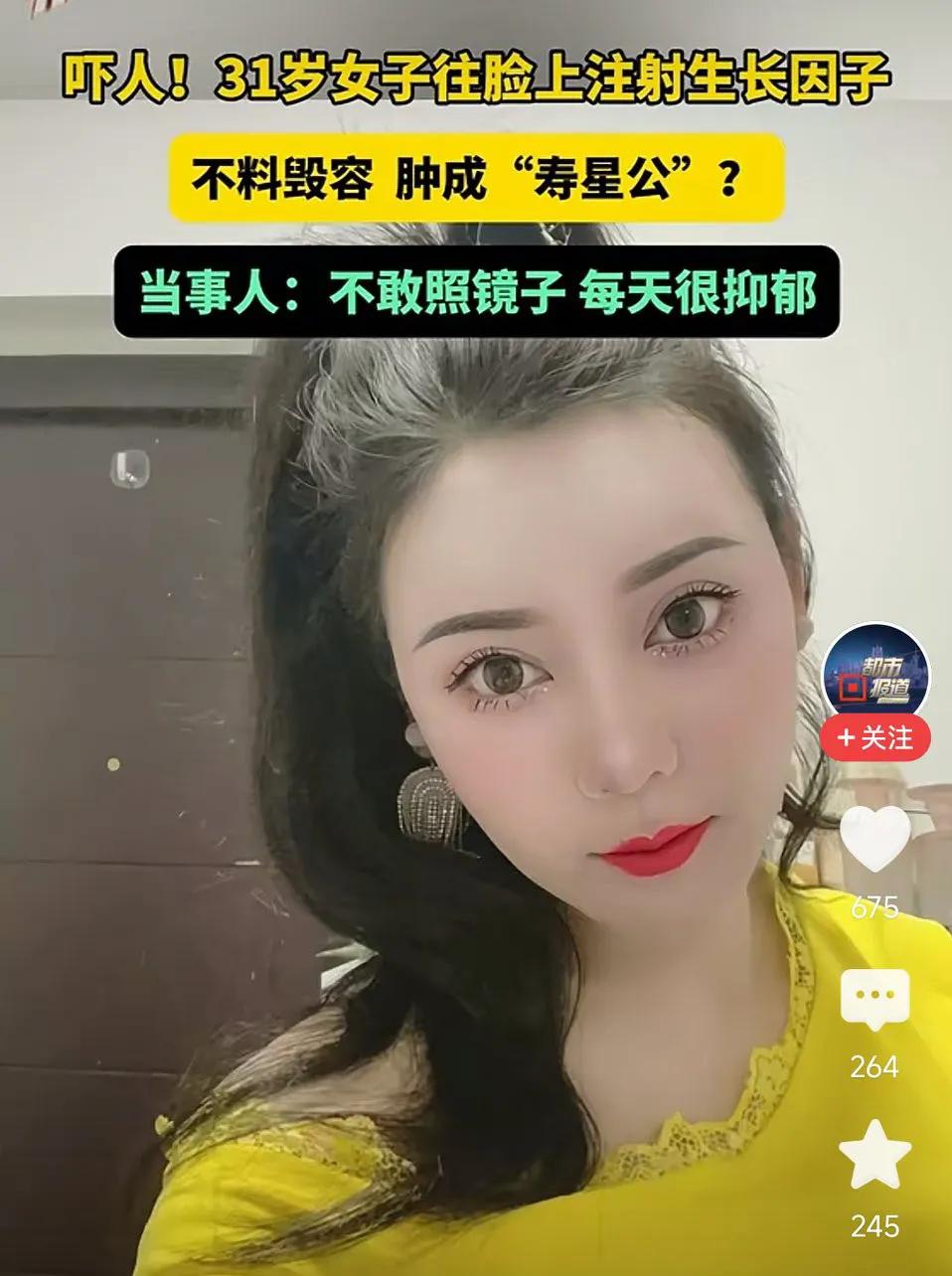 禁用!医美需慎重!湖北一女子脸部注射生长因子,过度医美,面部馒化酷似面具人! 网