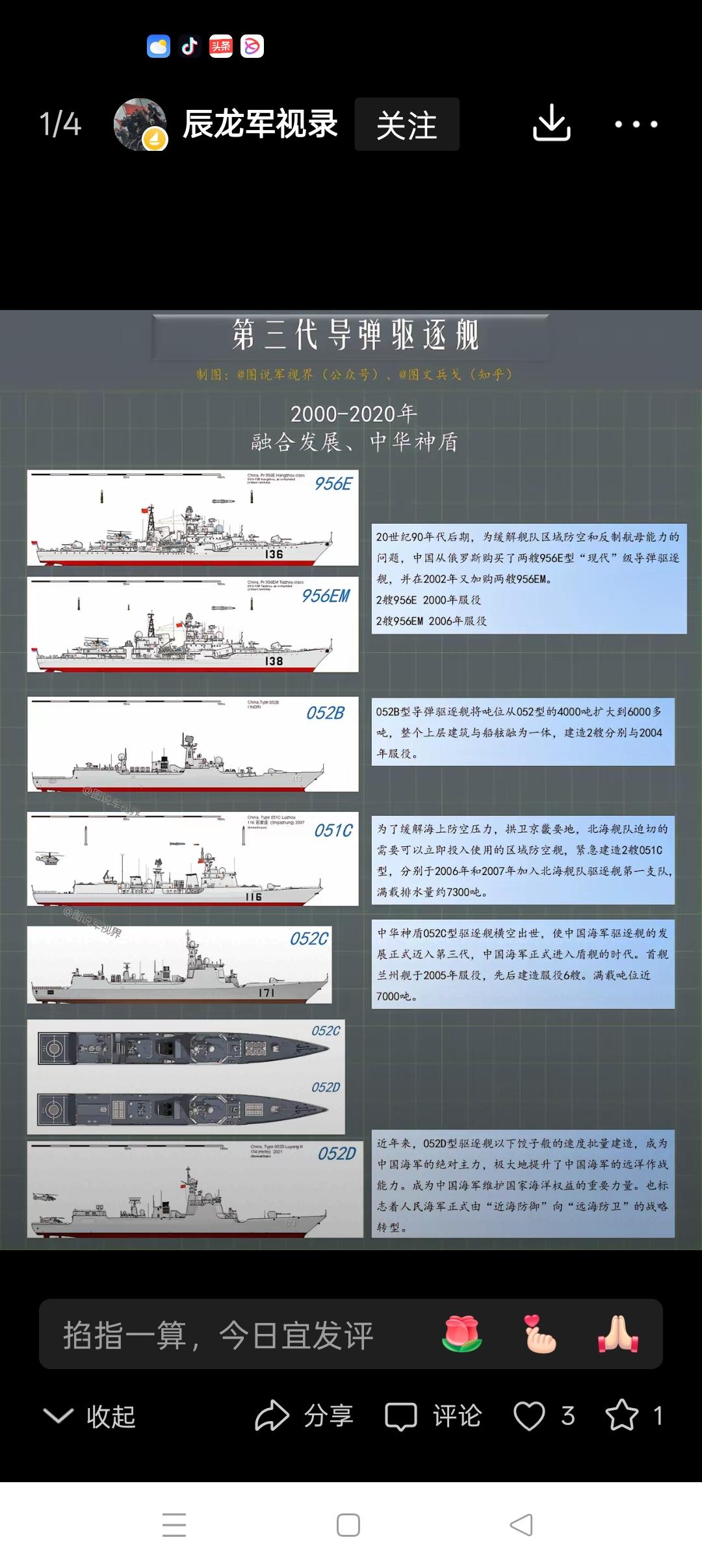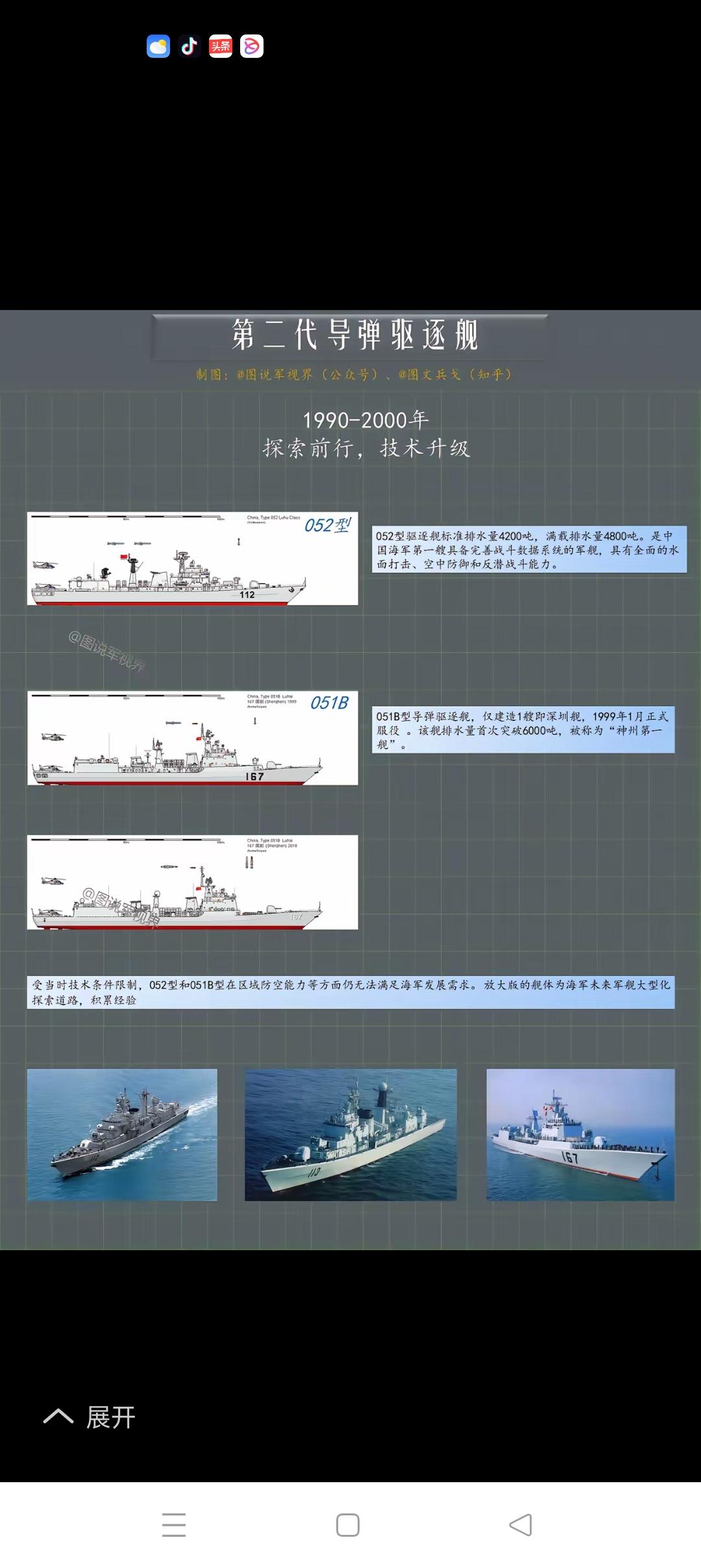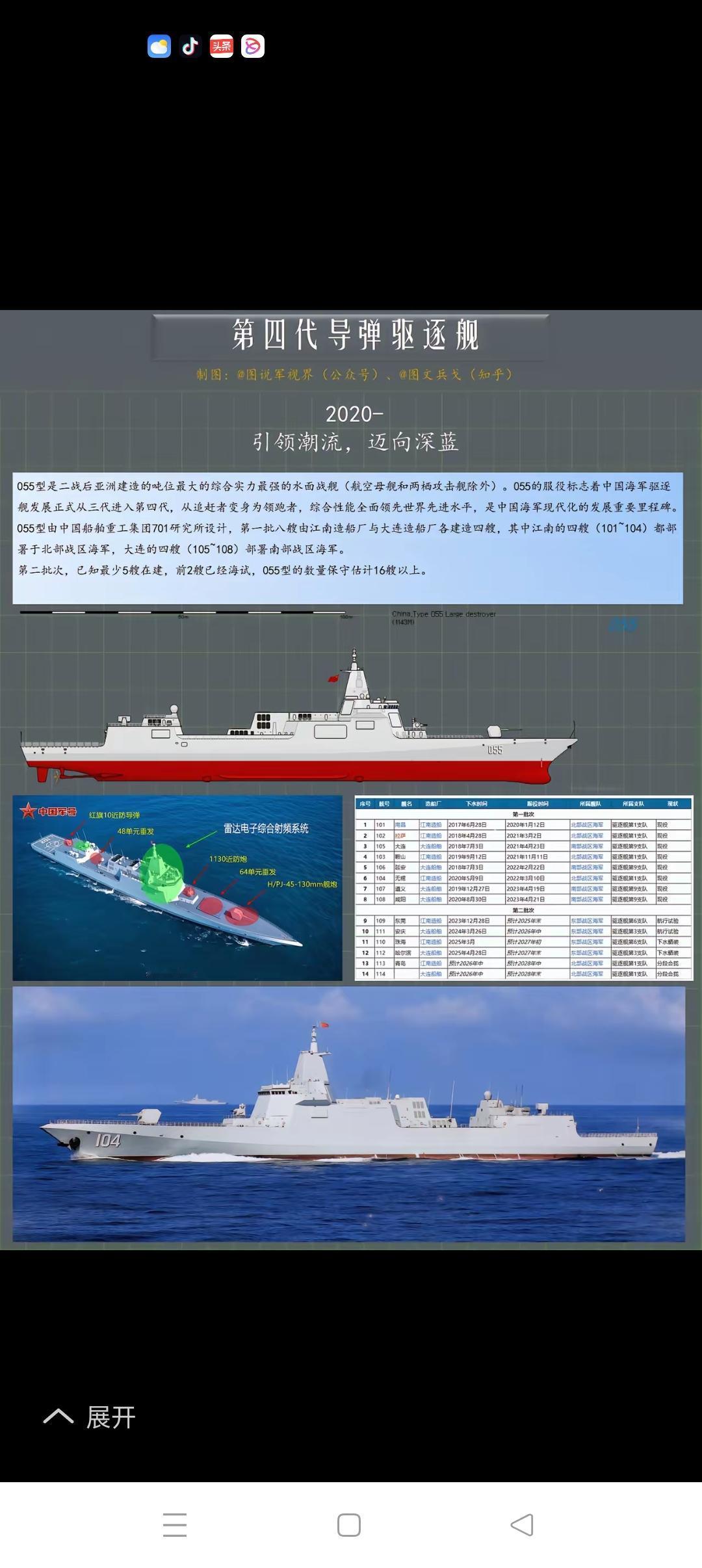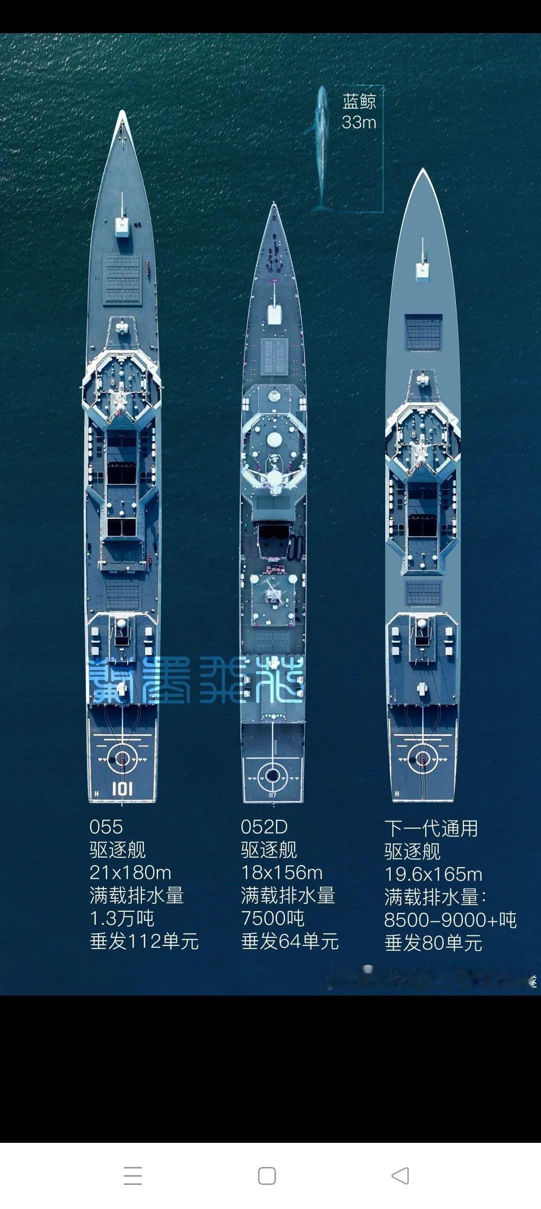 我海军驱逐舰发展图解 我海军驱逐舰发展经过了如图所示的第一代、第二代、第三代的发展历程,第四代发展始于2020年的055大驱建造(详见附图1、2、3、4),当完成第14艘大驱的建造工作后,055大驱将停止新建舰的制造。同时开始9000吨级通用舰及20000吨级武库舰的建造,以分别替代052D、055驱逐舰,以满足新的航母战斗群对驱逐舰的作战需求,两艘新舰的构造详见附图5、6。