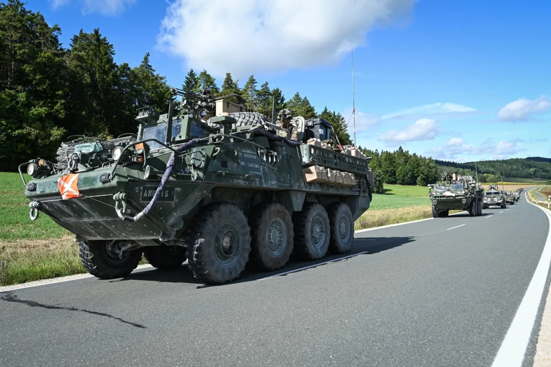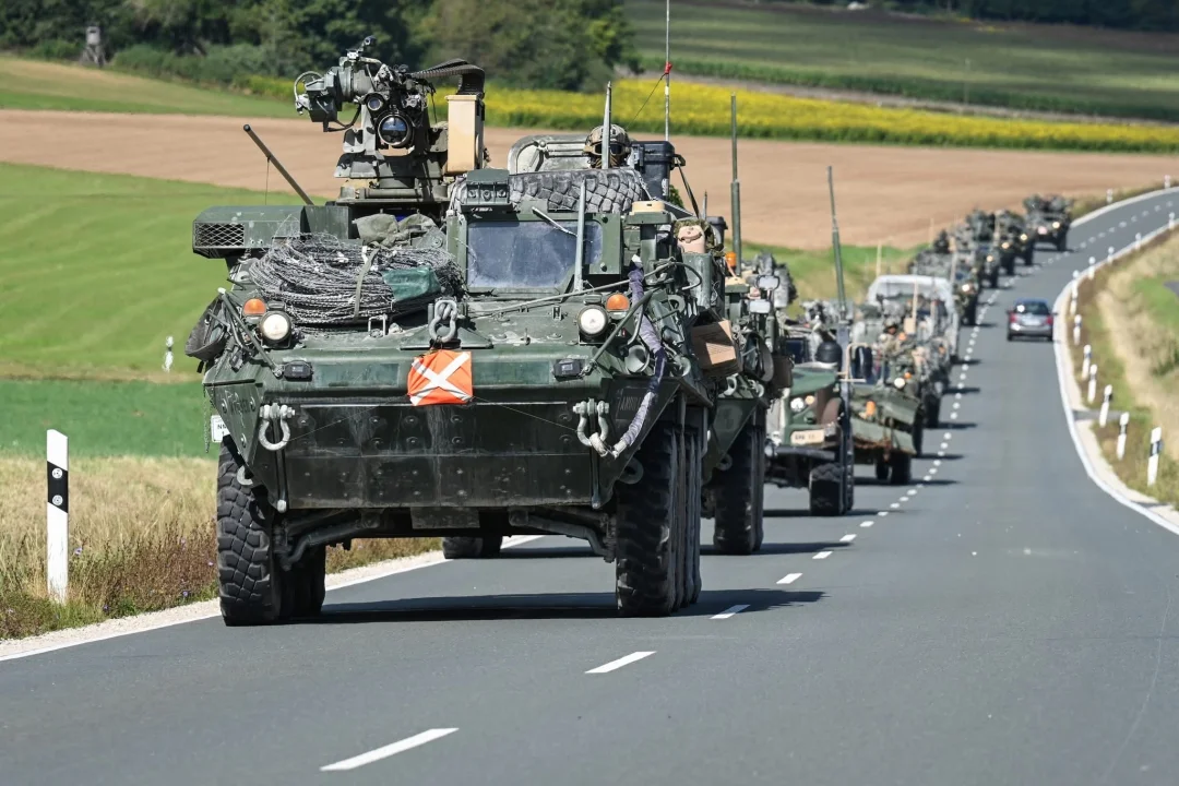 美国陆军车队行驶在德国公路上
