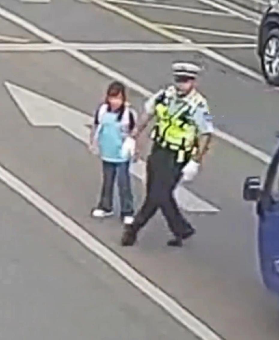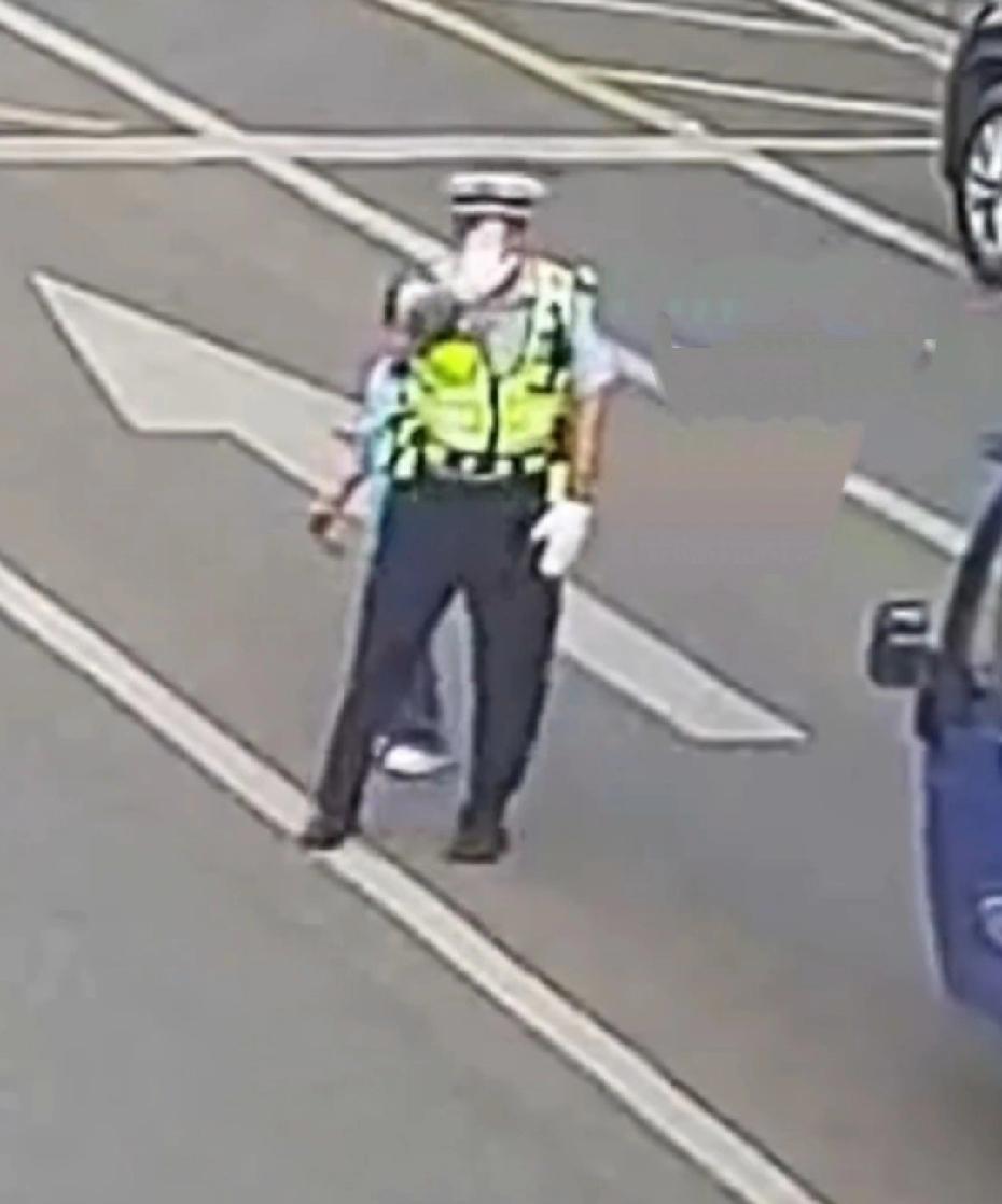 交警挡住车流 路口超暖!女孩捡国旗,交警秒挡车流护安全 路口车流正“嗖嗖”往