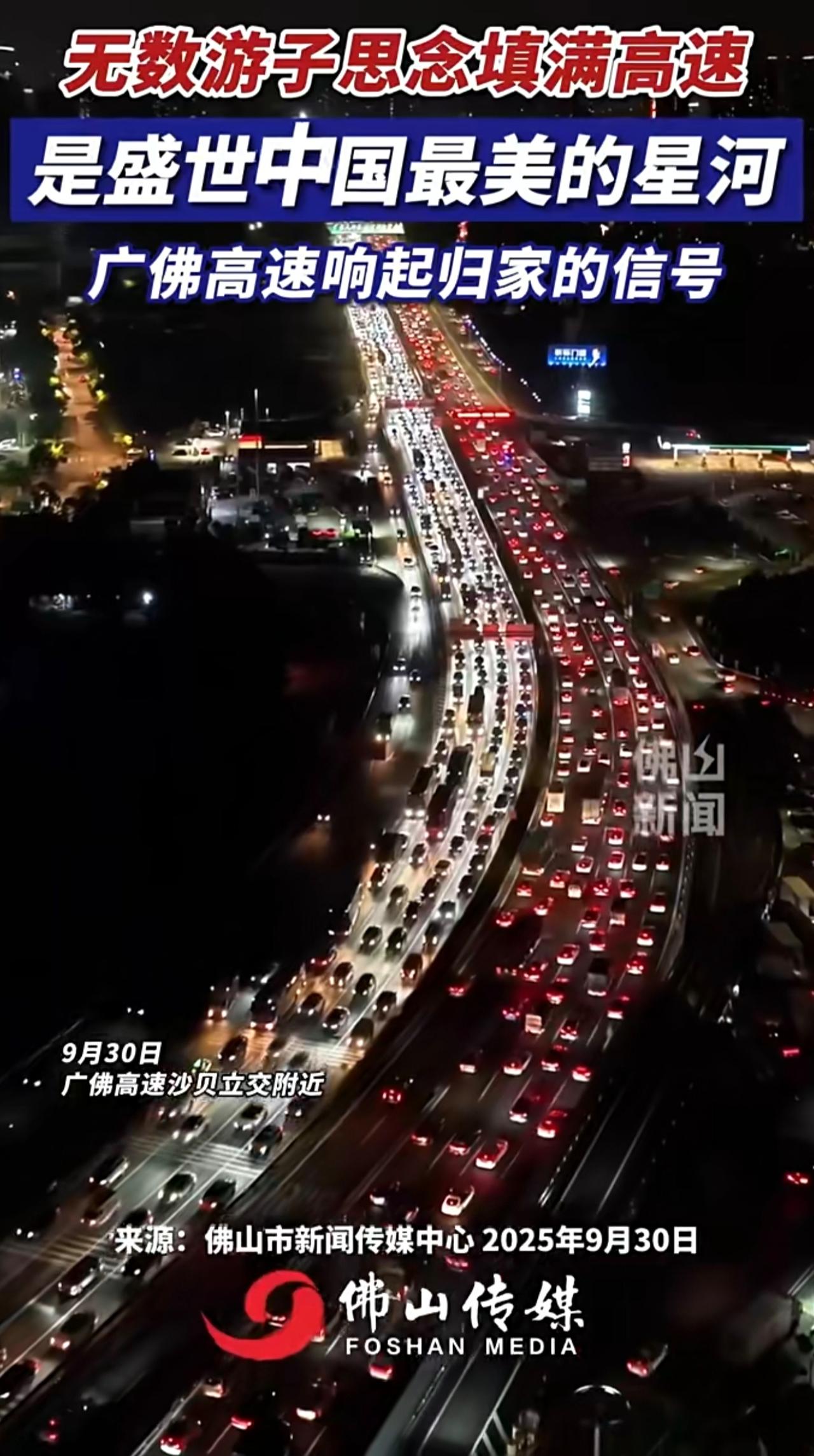 无数游子思念填满高速,是盛世中国最美的星河!广佛高速响起归家的信号!(编辑:曹梓俊;责编:唐欣瑜;佛山市新闻传媒中心记者 黄锦成、唐格桢)双节同庆趣游佛山 请到佛山过国庆