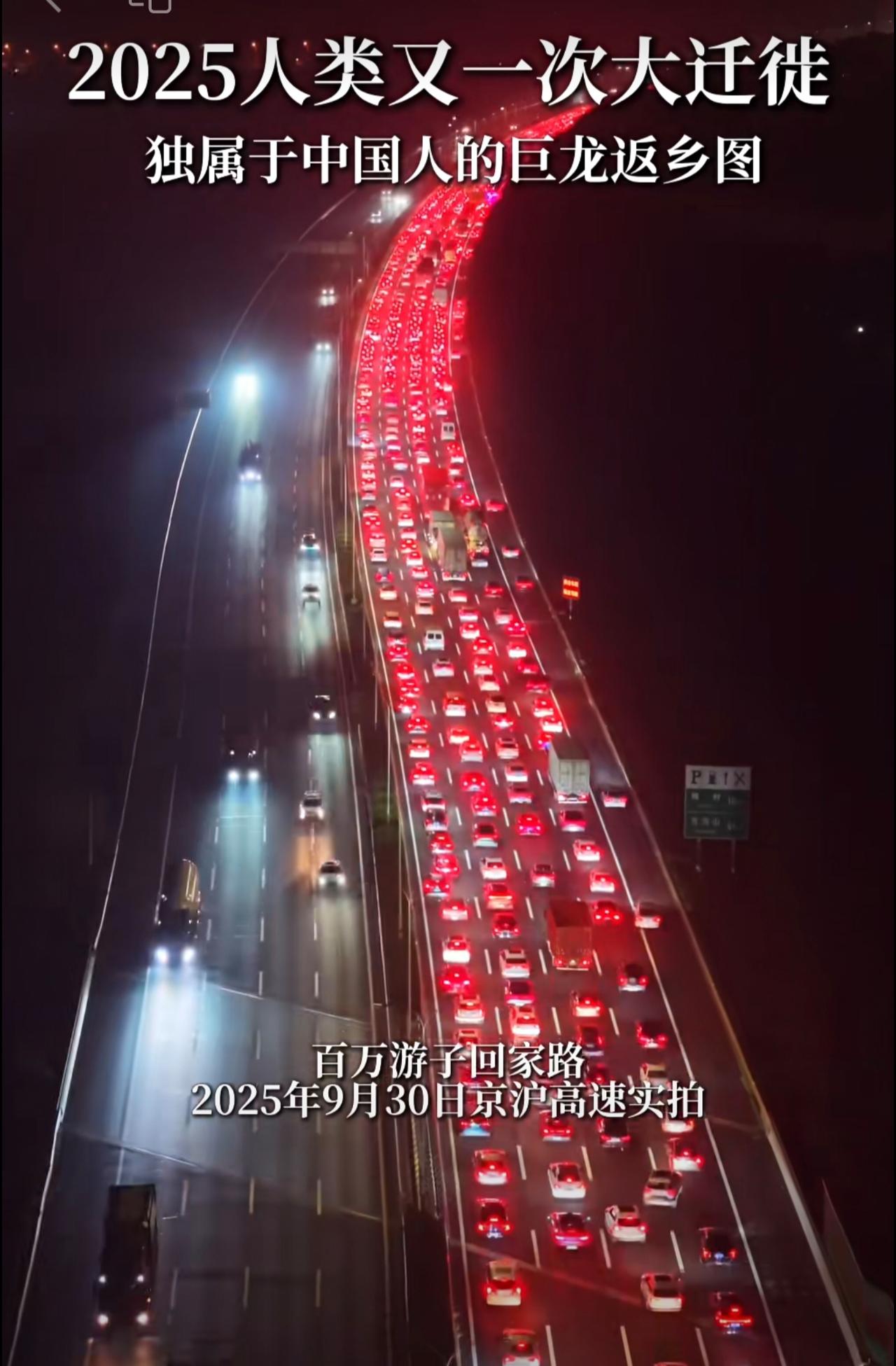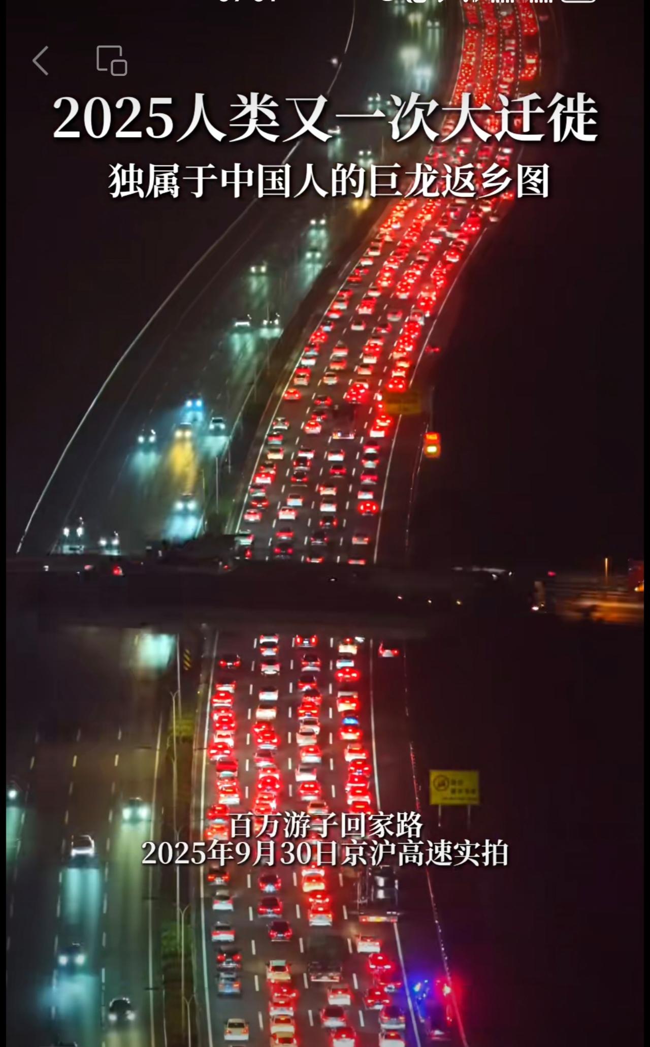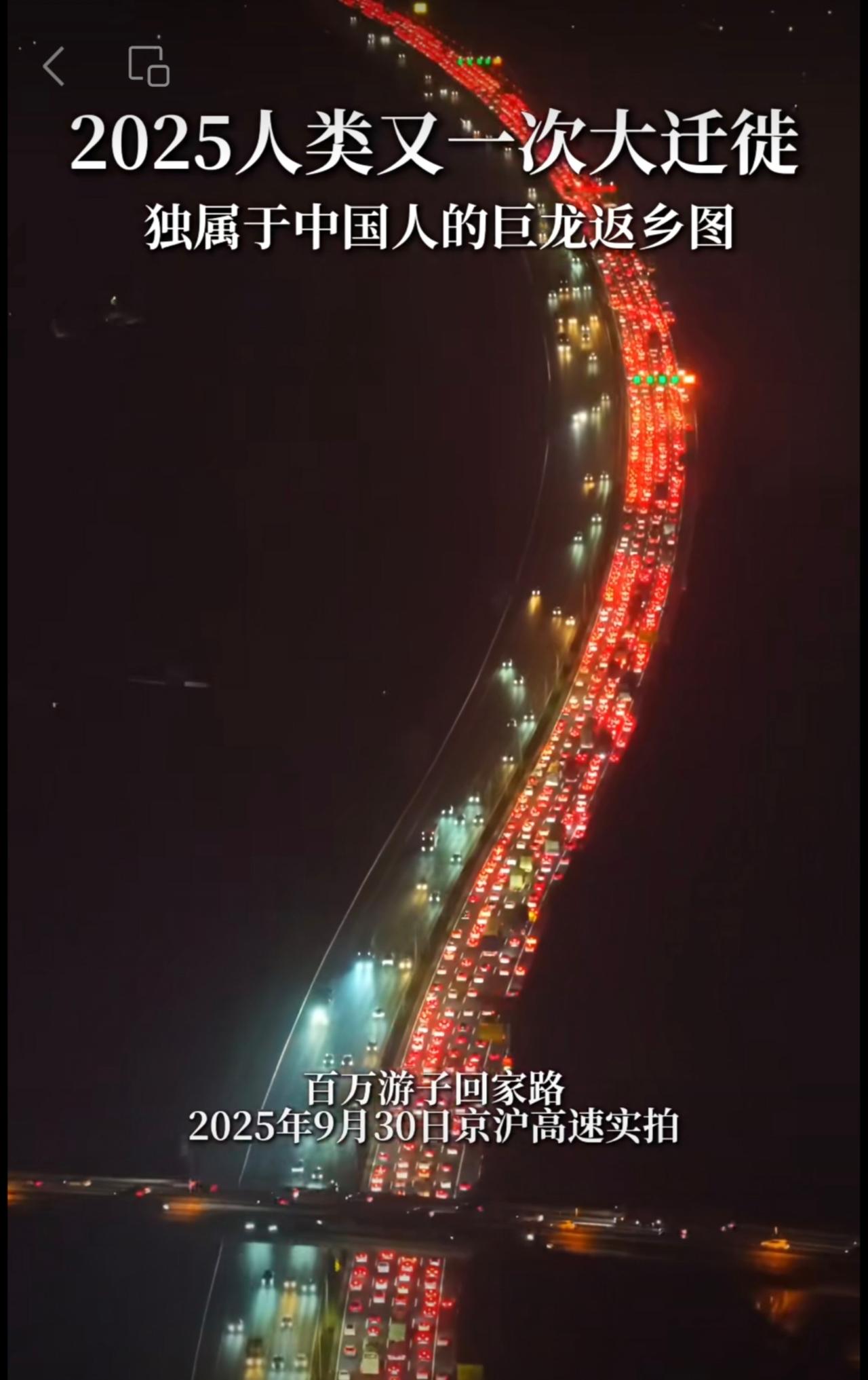 2025年9月30日500米高空实拍京沪高速的百万游子回家路!前方很堵,安全到家!独属于中国人的巨龙返乡图!
