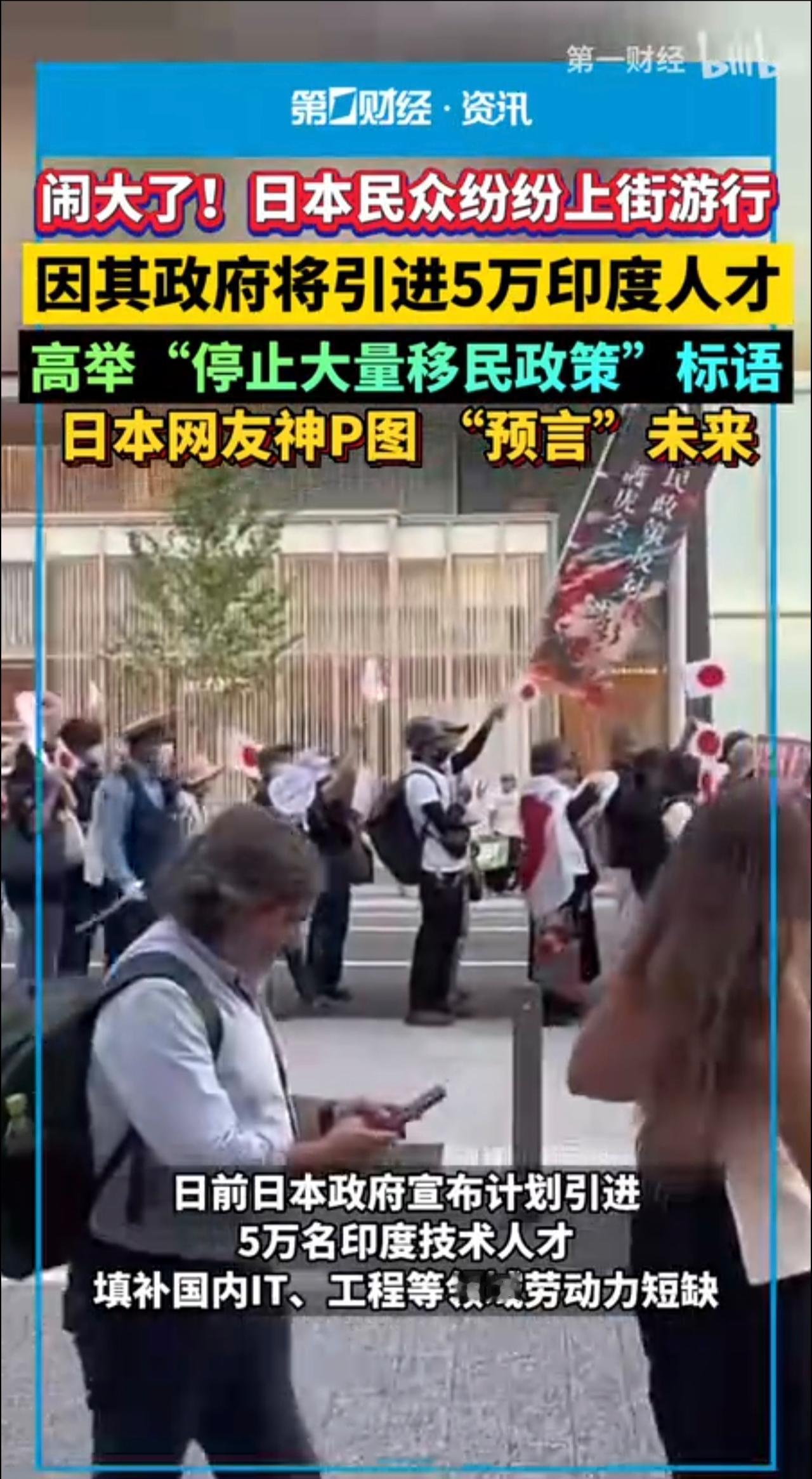 闹大了!日本民众纷纷上街游行!因其政府将引进5万印度人才!日本网友神P图“预言”未来。
