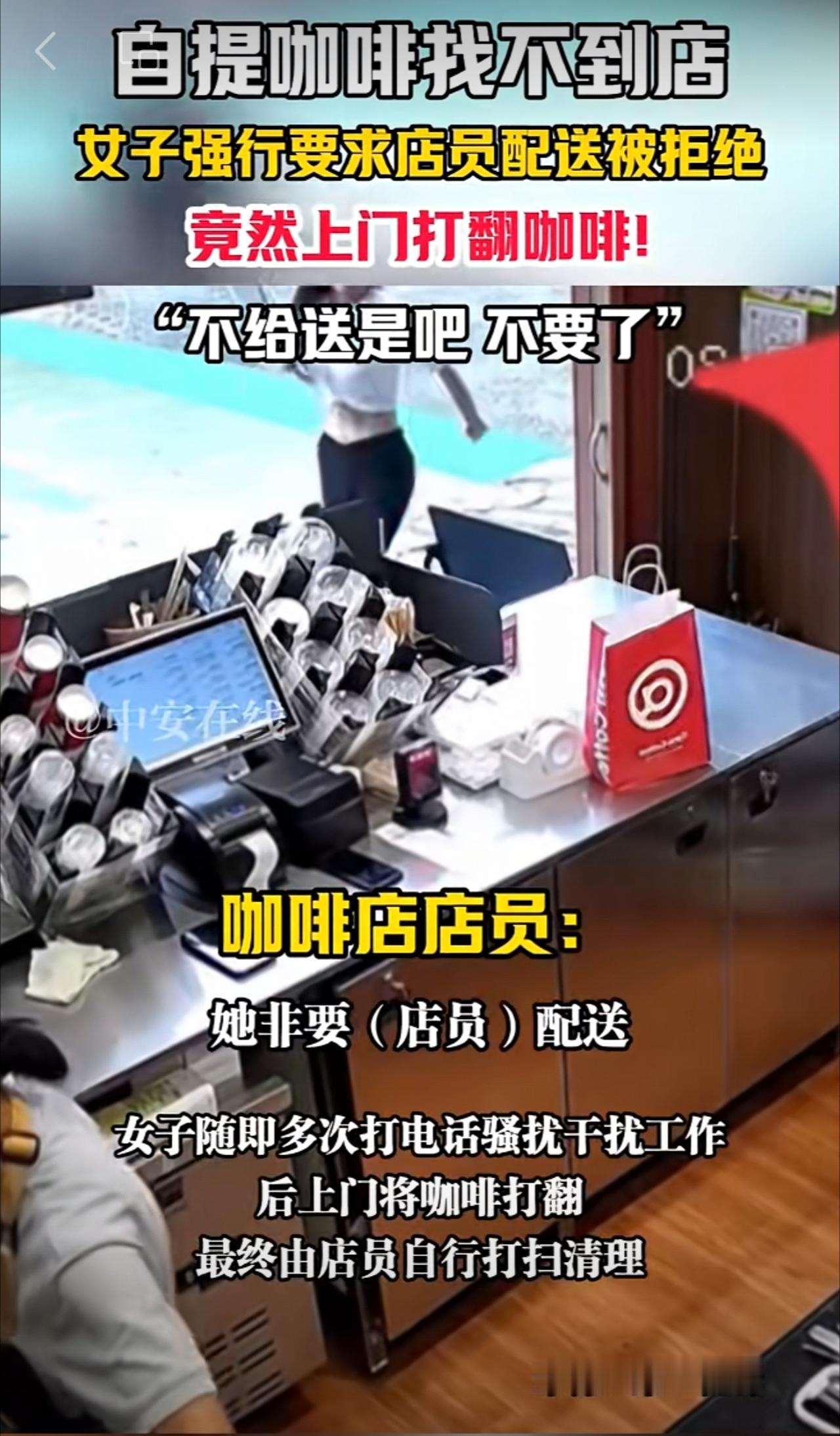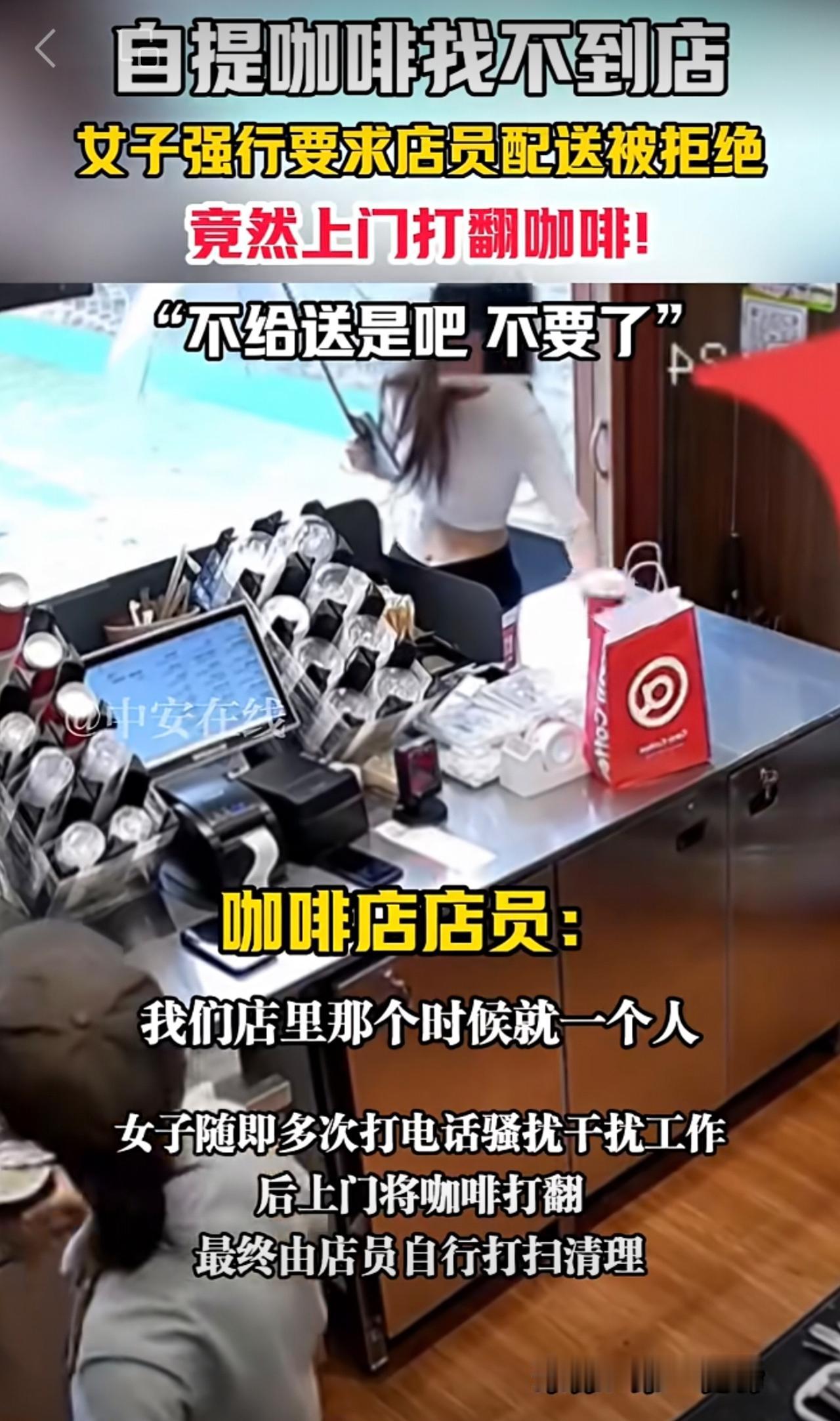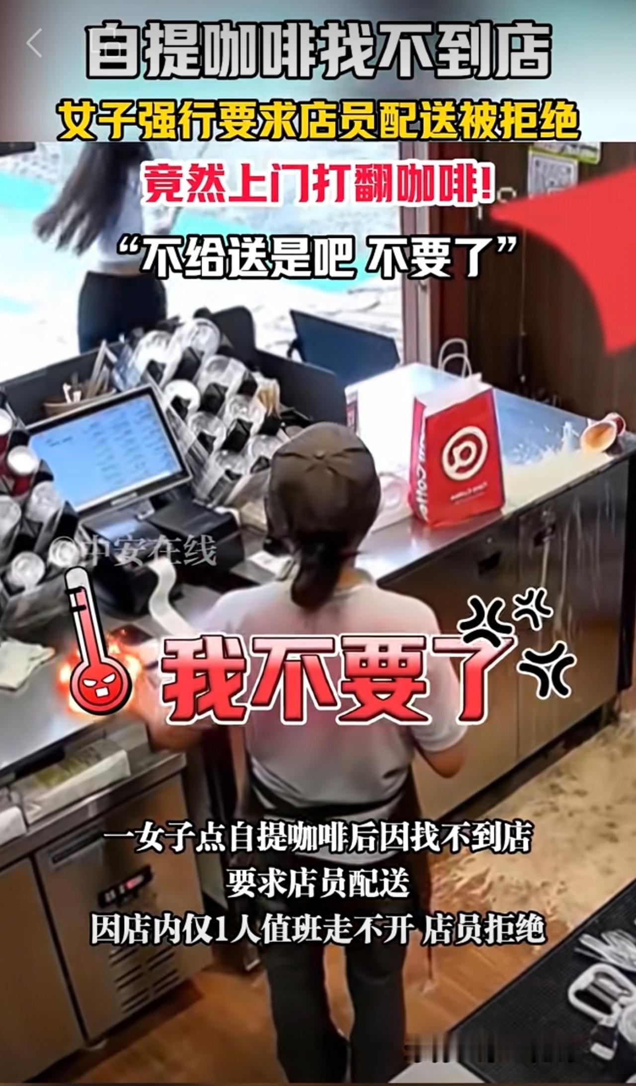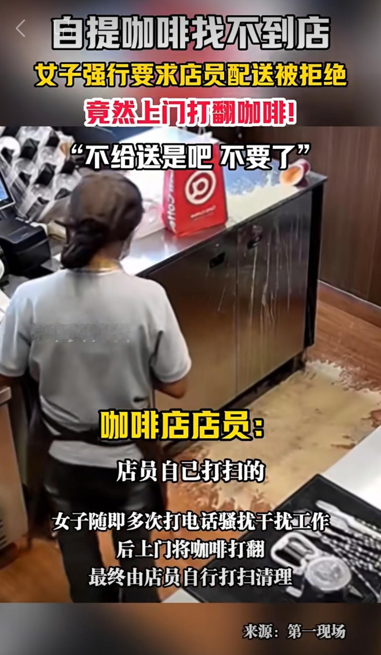 9月30日贵州,自提咖啡找不到店,女子强行要求店员配送被拒绝,竟然上门打翻咖啡!
