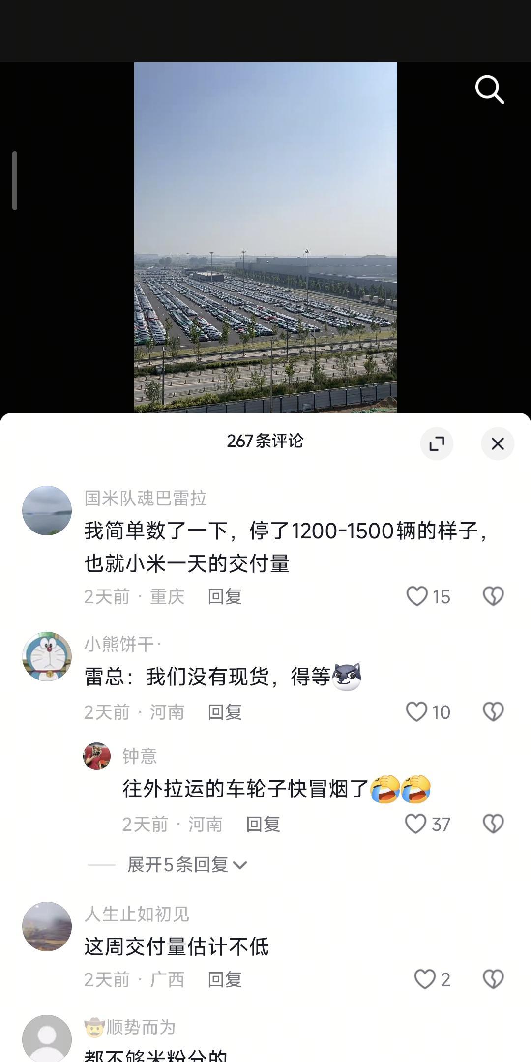 这停车场满满当当的全是小米YU7 [努力][努力][努力] 真不错,小黑子们素材又有了,库存 0 公里二手车[酷][酷][酷]