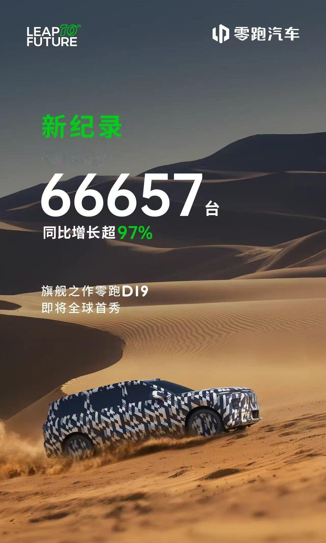 第一波销量数据来了。零跑率先领着优秀的月度销量。2025 年 9 月 66657台!创下了新的销售记录,同比增长97%。这个数据太闪耀了。