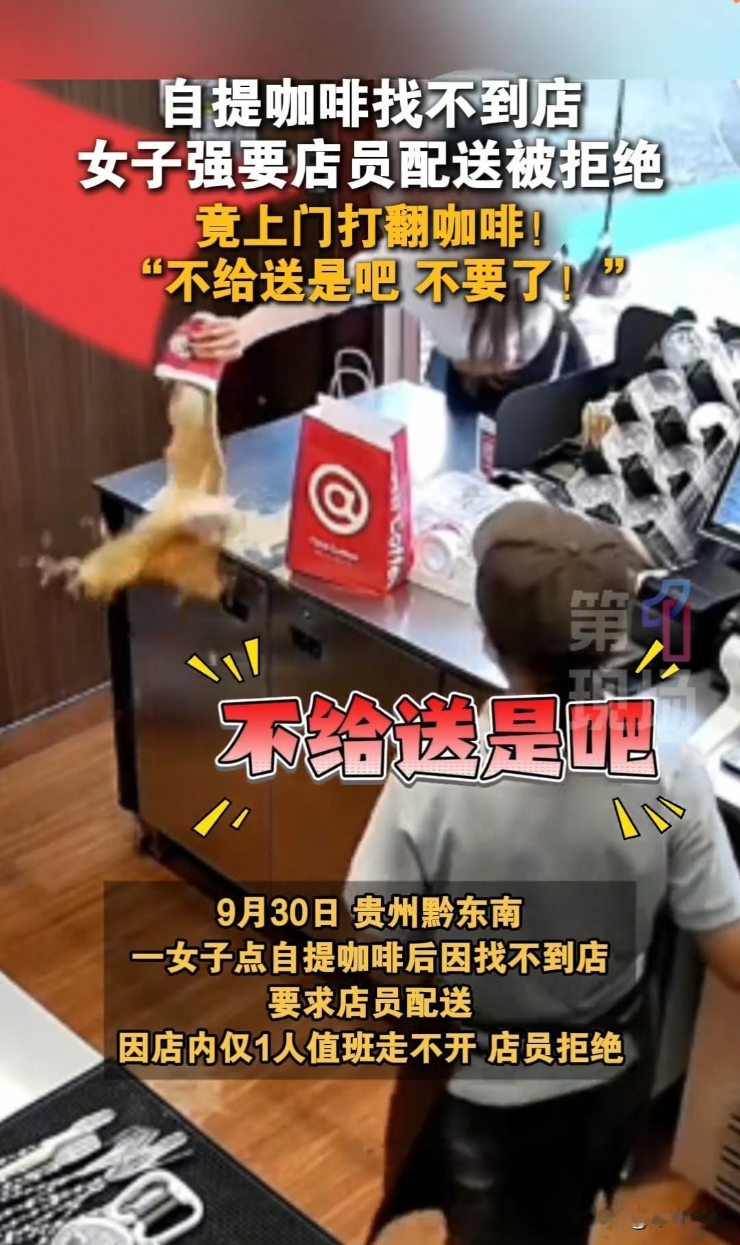 不是嗓门大就有理的!贵州,女子上门去把店里的咖啡打翻,还说,你们不送是吧?不送是