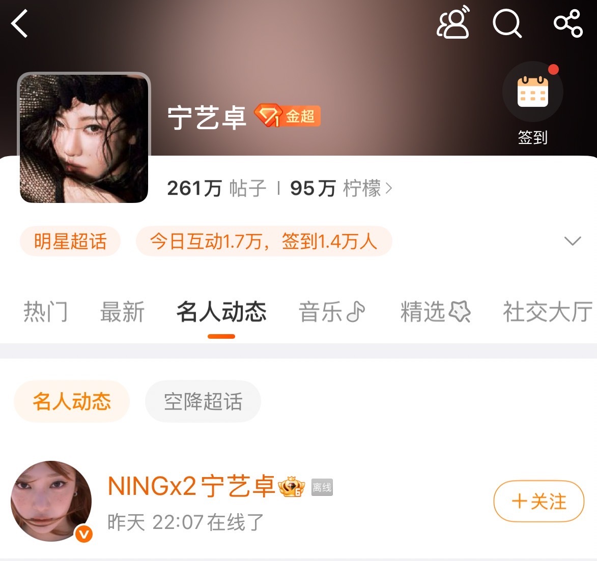 理性讨论 昨天刚上线发完动态的宁艺卓今天会转发任务博吗?