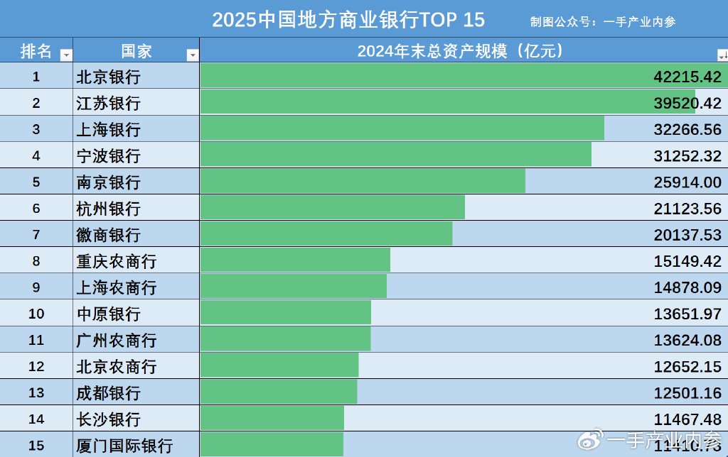 另附:2025中国地方商业银行15强名单,数据源于:中国银行业协会。