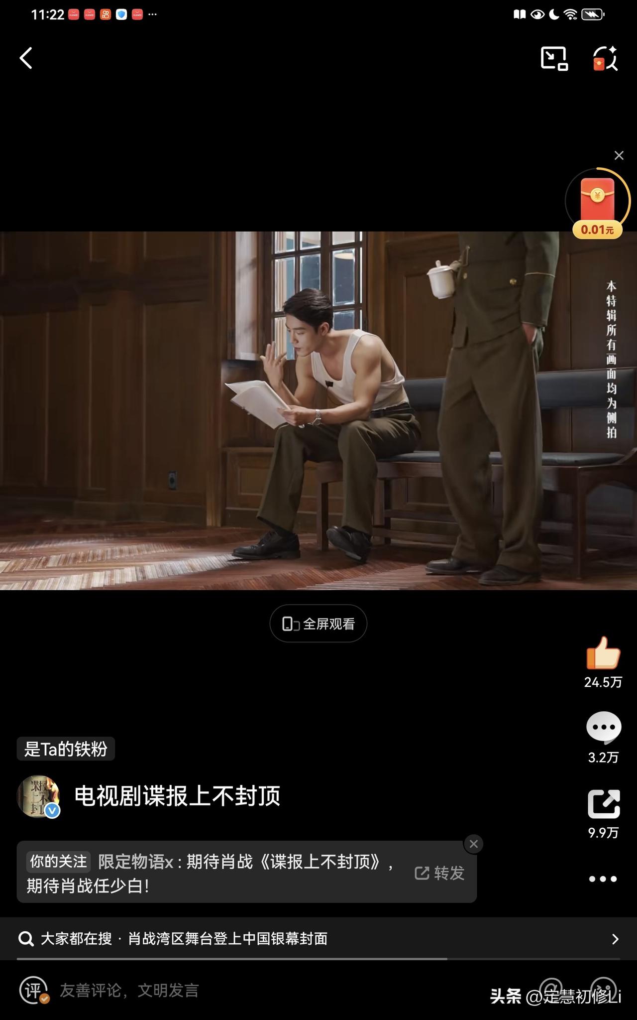 去看肖战《谍报上不封顶》杀青特辑了,预告悬念很多,感觉很剧情很复杂很精彩,肖战任