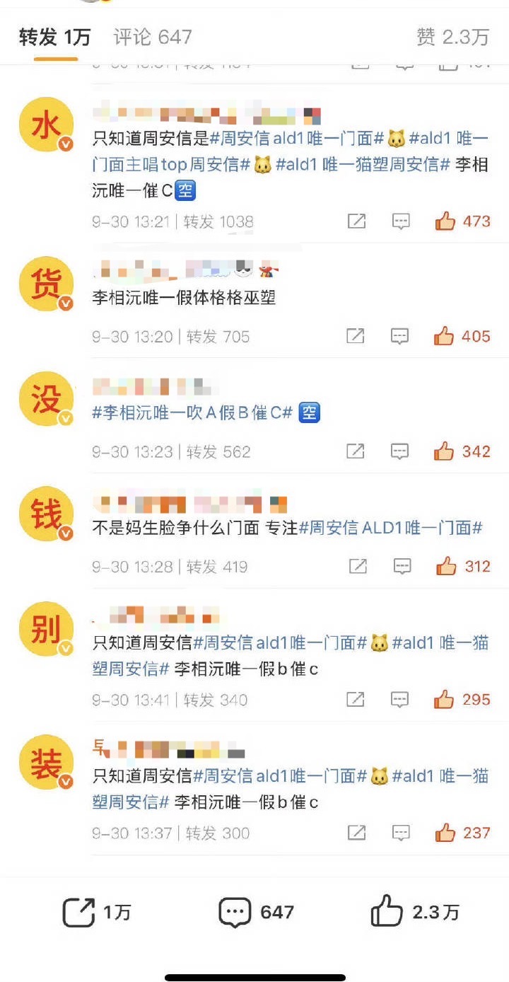 怎么看李相沅和周安信粉饰互相排的字​​​