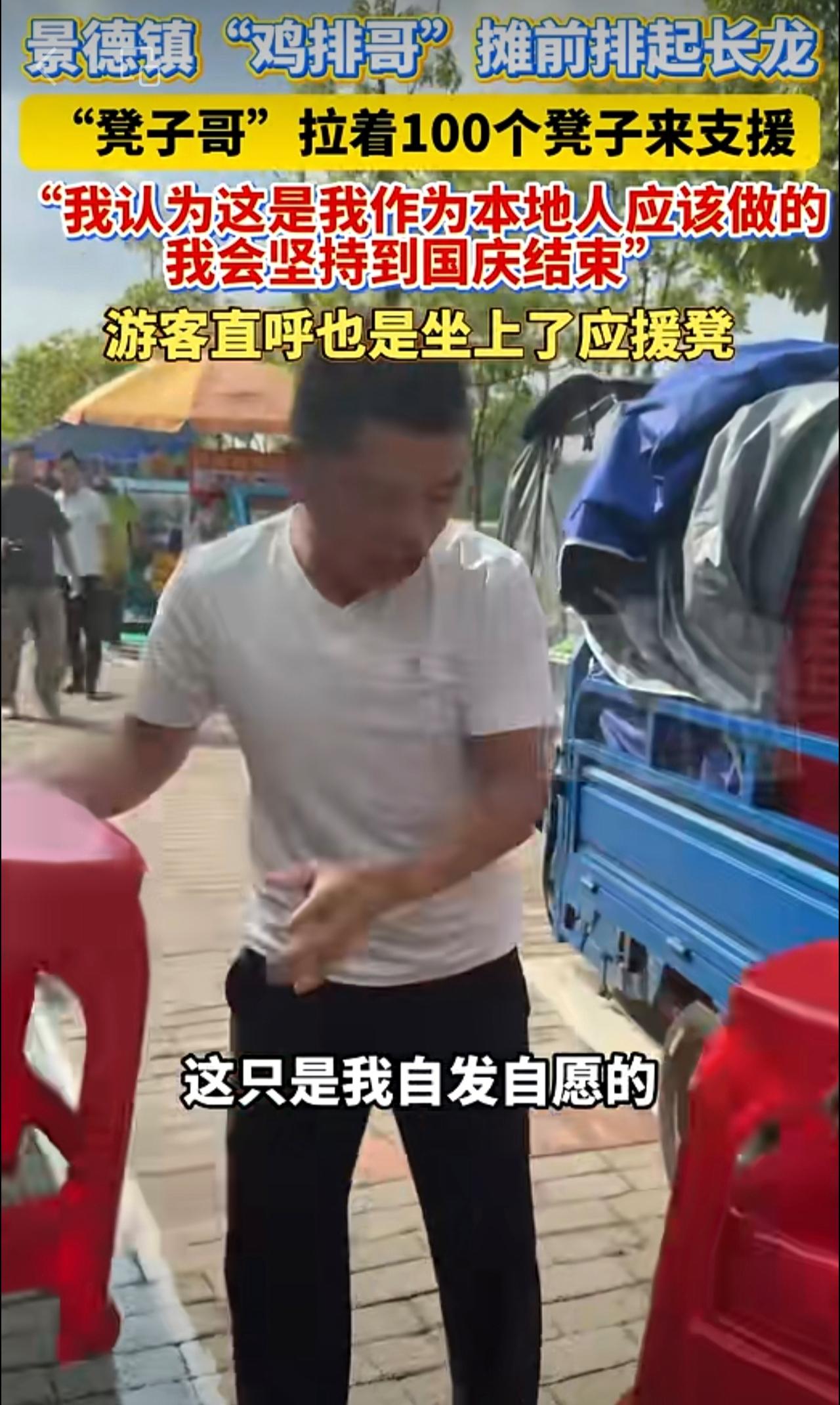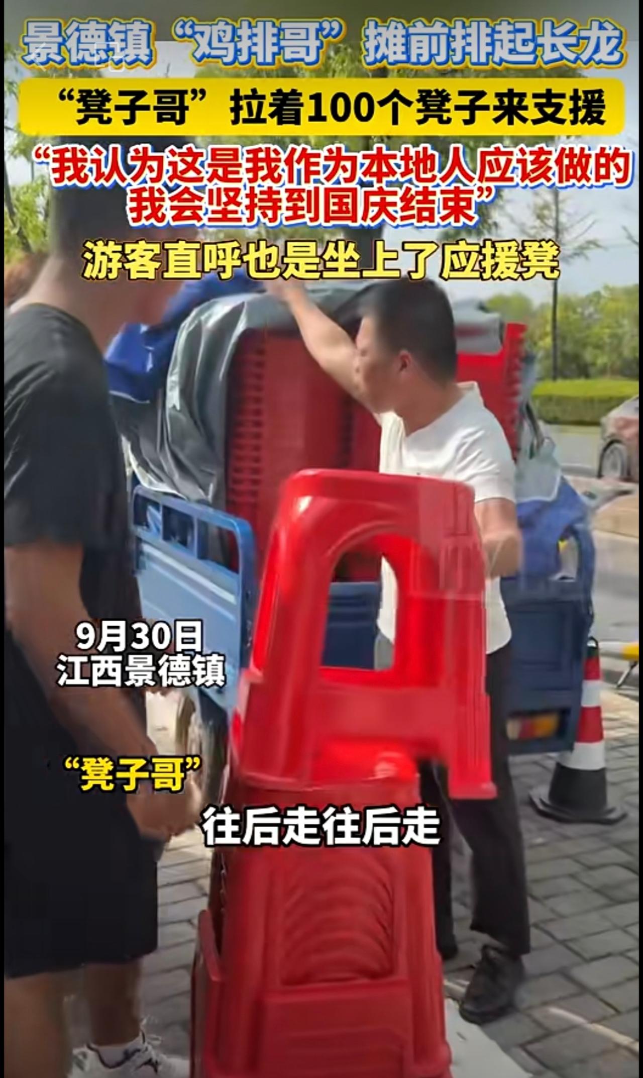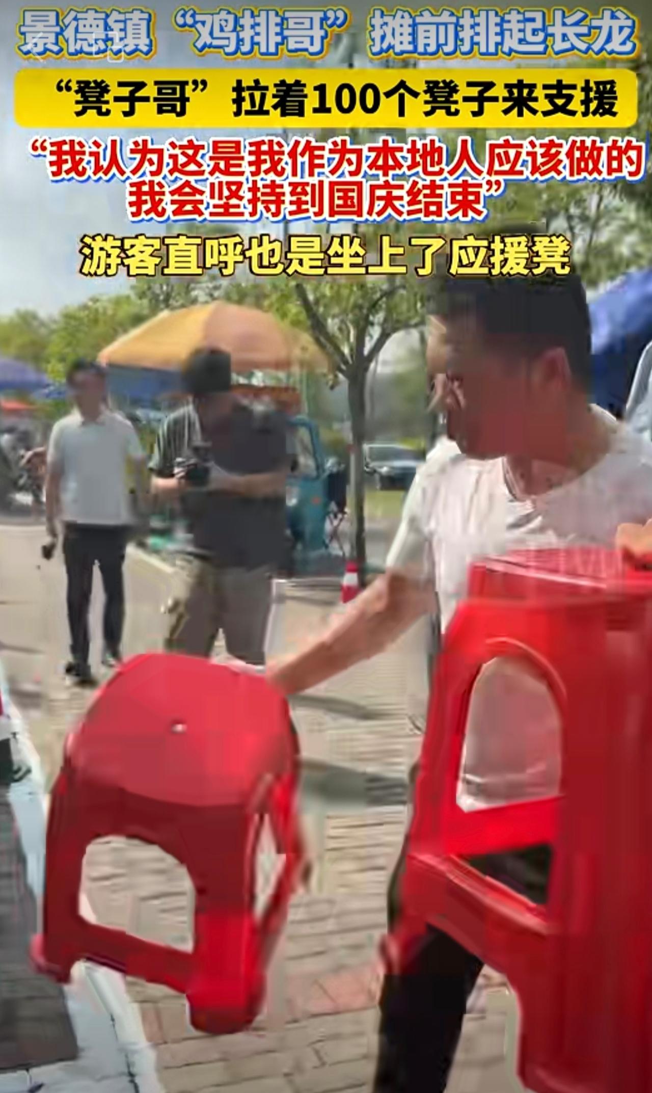 景德镇“鸡排哥”摊前排起长龙,“凳子哥”拉着100个凳子来支援,点赞!