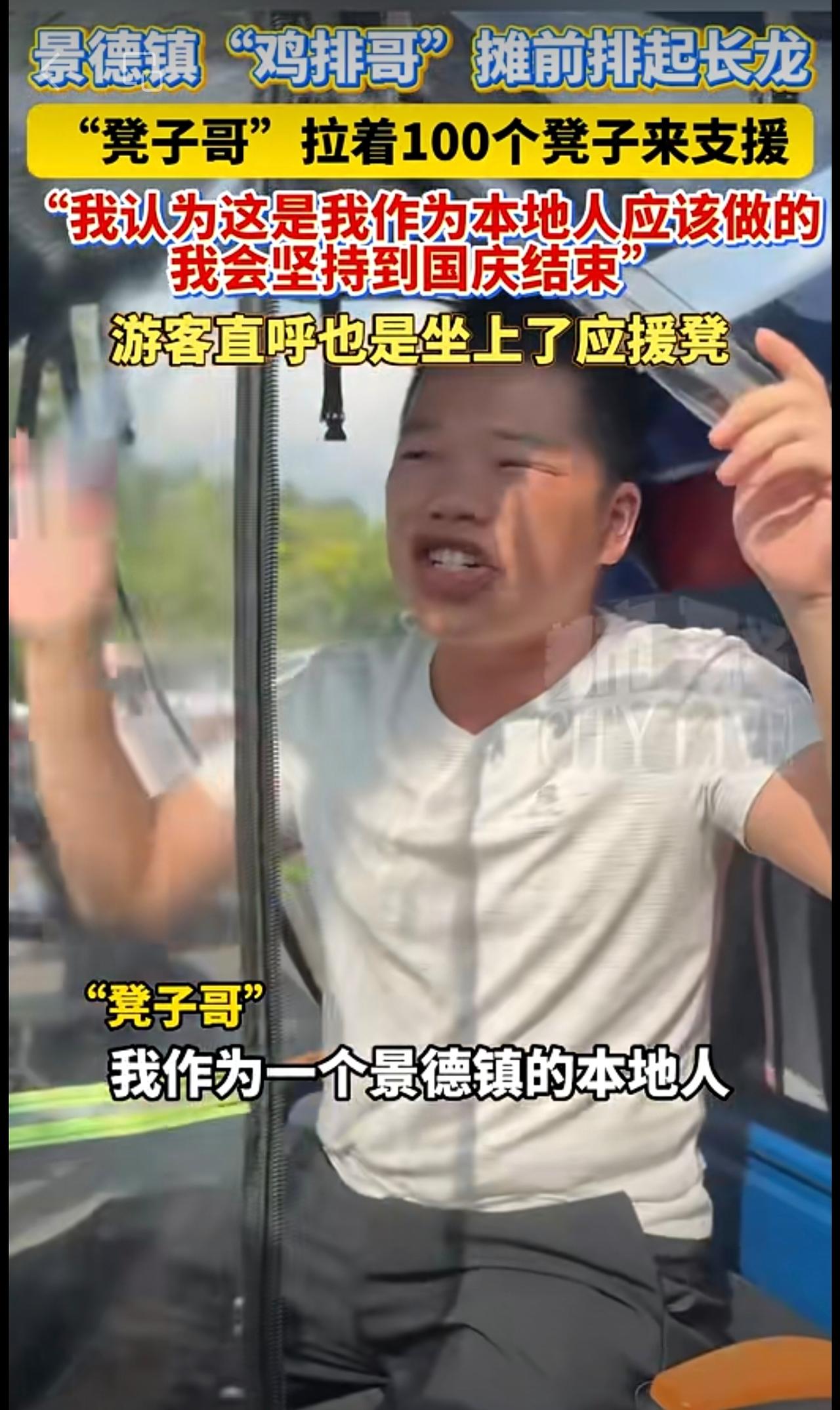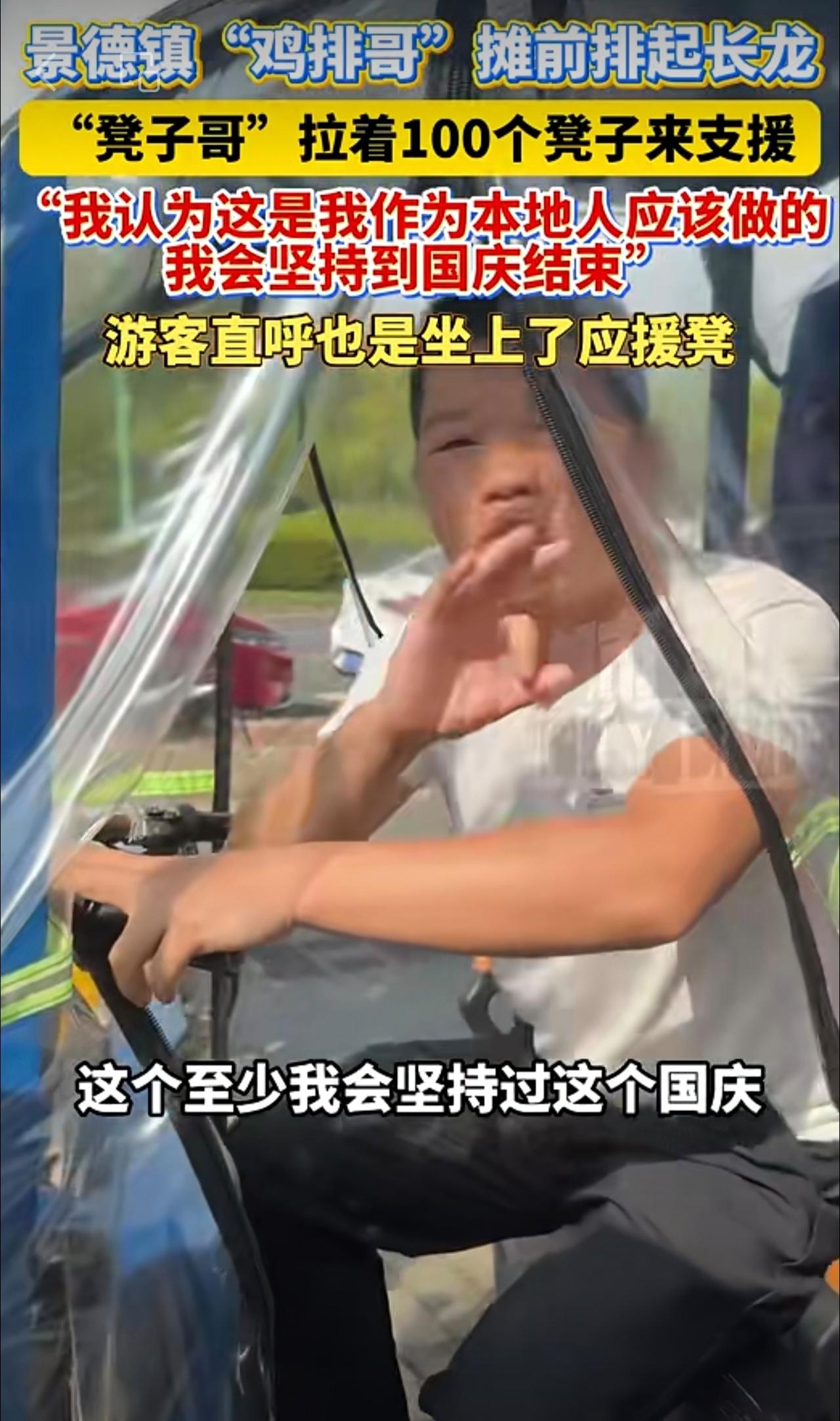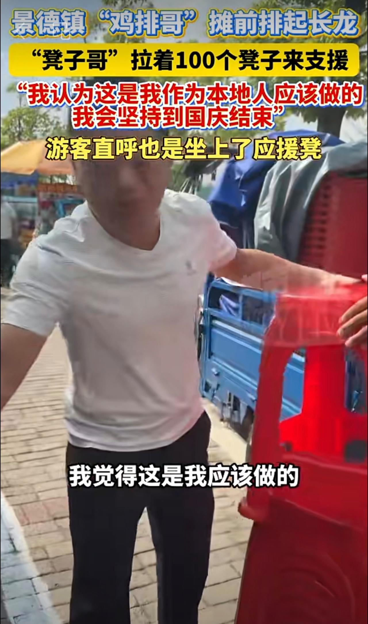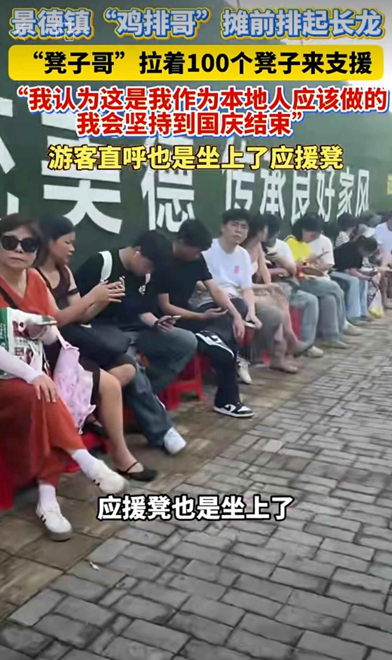 景德镇“鸡排哥”摊前排起长龙,“凳子哥”拉着100个凳子来支援,点赞!
