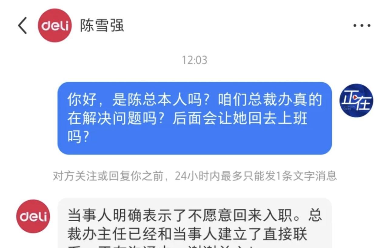 女子因为跛脚问题入职当天,被得力辞退事件最新后续来了! 得力总裁办主任邀请女子面聊,但是被她给明确拒绝了,而且她还表示不会考虑再去得力工作!要我说拒绝就对了,事情过去都近半年时间了,人家都不需要吃饭的吗?再者,在已经撕破脸皮的情况下入职,但凡是一个有点脑子的人,她都不会这样做。事实上你仔细回想这起事件,还是感觉到很奇葩。 事情是在今年5月份的时候发生的,当时女子应聘的岗位为HRBP,她是已经通过了三轮面试,拿到了入职的通知,在总部接受培训的时候,却因为腿部问题被辞退,而且人事还要她主动说,是自己不适应主动离开的。后来女子就把自己的经历发到了网上,很快这起事件就在网上掀起了轩然大波,一大批的网友在为女子抱不平。 事实上如果是因为能力不够被辞退,我相信女子估计也认了,可问题是她有7年的工作经验,而且还通过了三轮面试,很明显她的能力是被认可的。可你却在聊到腿部问题后,以领导不同意入职为由辞退人家,这不过就是在掩盖背后的歧视而已。 说真的我有点搞不懂,她应聘的只是一个人资的岗位,又不是应聘一个走秀的模特,所以不应该看重能力才对吗?难道在得力集团里边,形象远比能力更为重要?如果真的只看重形象的话,我相信得力集团也不会发展到如此的规模了!再者,如果你觉得人家形象不够好,一开始就说人家不合格不就行了吗? 在别人通过层层面试,开始正式培训的时候,你再拿所谓的腿部来说事,这不仅仅是一种不专业,更是一种赤裸裸的歧视。难道应聘者的时间就不是时间了吗?而且你现在所谓的道歉,也不是因为你真的知道自己错了,只是因为你害怕了而已。一个企业想要行稳致远,就需要一大批的贤才辅助,可如果你把形象放在第一位,那衰败不过就是早晚的事情。