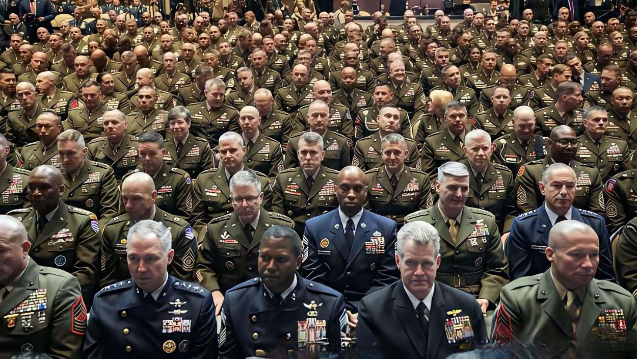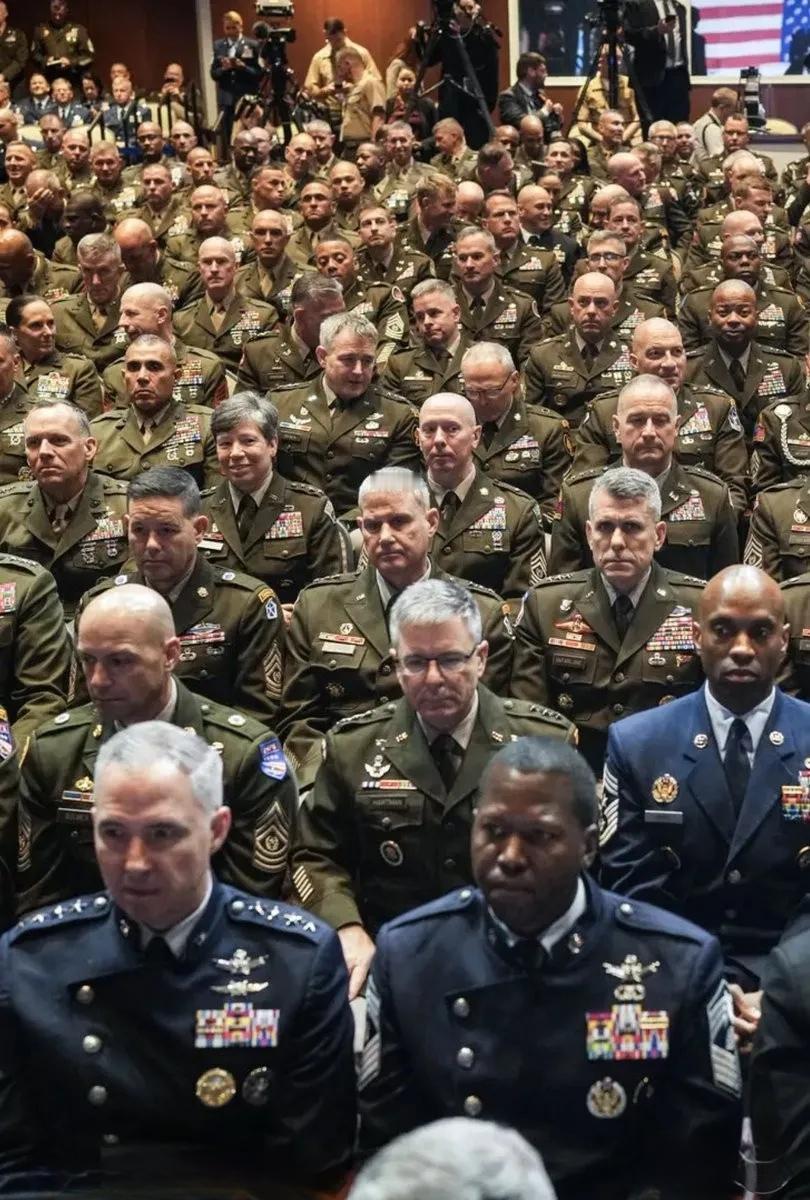 那刻,赫格塞斯似乎找到了人生巅峰的感觉 在美国高级将领全体大会上,赫格塞斯这位曾经的军中少校,如今的美战争部长,独自一人在台上边踱步,边用目光俯视台下——只见乌央乌央端坐着胸前挂满勋章的将军元帅,有些还是他的老上司,都在抬头乖乖听他训斥。 那种感觉,妥妥的人生赢家,太爽了。 友友们觉得台下那些将军们内心是怎么想赫格塞斯的呢?欢迎在评论区分享交流。