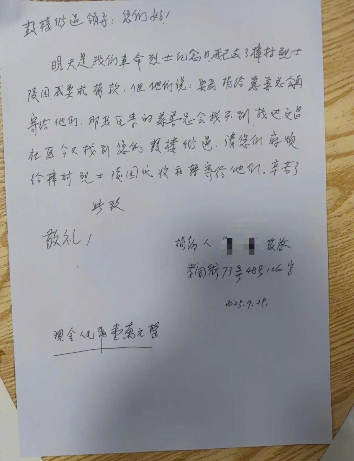 9月30日,宁波海曙区鼓楼街道文昌社区居民崔阿姨揣着一个裹得严严实实的布包,走进了文昌社区的办公室。对着工作人员,她温和又坚定地道明了来意:“同志,我想捐一笔钱给樟村四明山革命烈士陵园。但我不知道具体该怎么捐,能不能请你们帮帮我?”当布包一层层被打开,出现在工作人员眼前的赫然是一沓厚厚的、码得整整齐齐的现金,足足有一万元。 崔阿姨今年87岁,是一名有着54年党龄的老党员。当天,她脚上穿得那双鞋早已看不出原本的颜色,鞋底更是补了五次,针脚层叠,磨损处用胶粘了又粘。 这次捐款并非崔阿姨第一次慷慨解囊。早在2023年12月,她已向党组织额外缴纳了一万元大额党费。对她而言,这并非“捐款”,而是“归位”——是将宝贵的财富归还给滋养她的党和人民。(记者 林伟 通讯员 王蒙 陈雨奇)