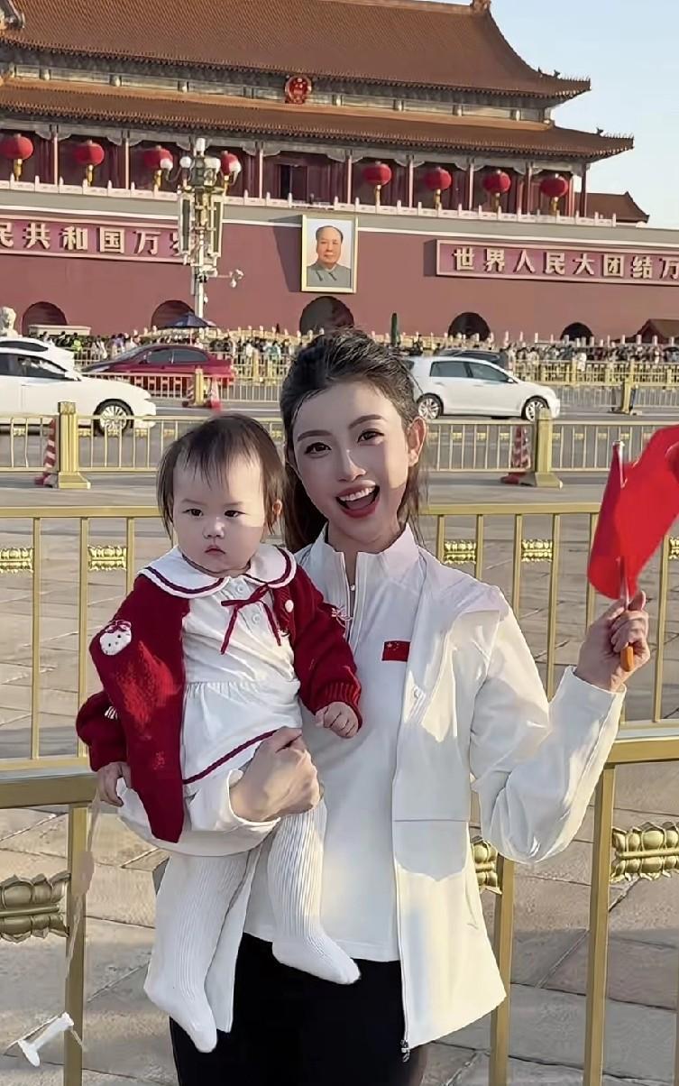 今天“驴家一姐”桐桐带着女儿专程到天安门广场看国庆升旗,为祖国庆生,并暗示在这里