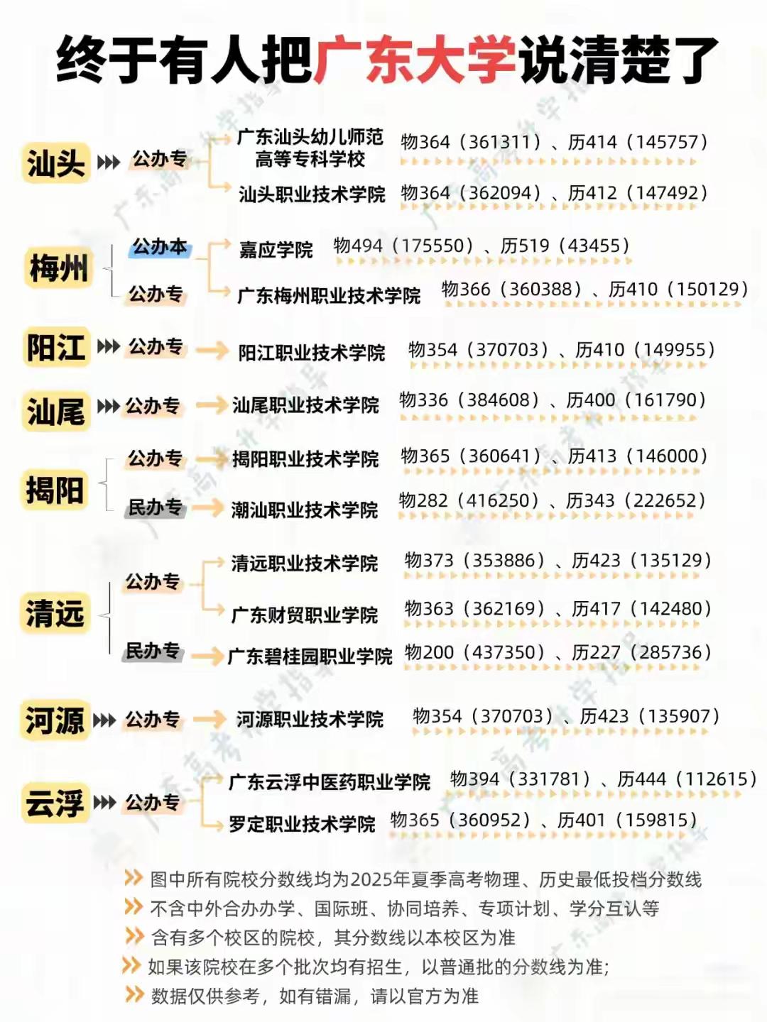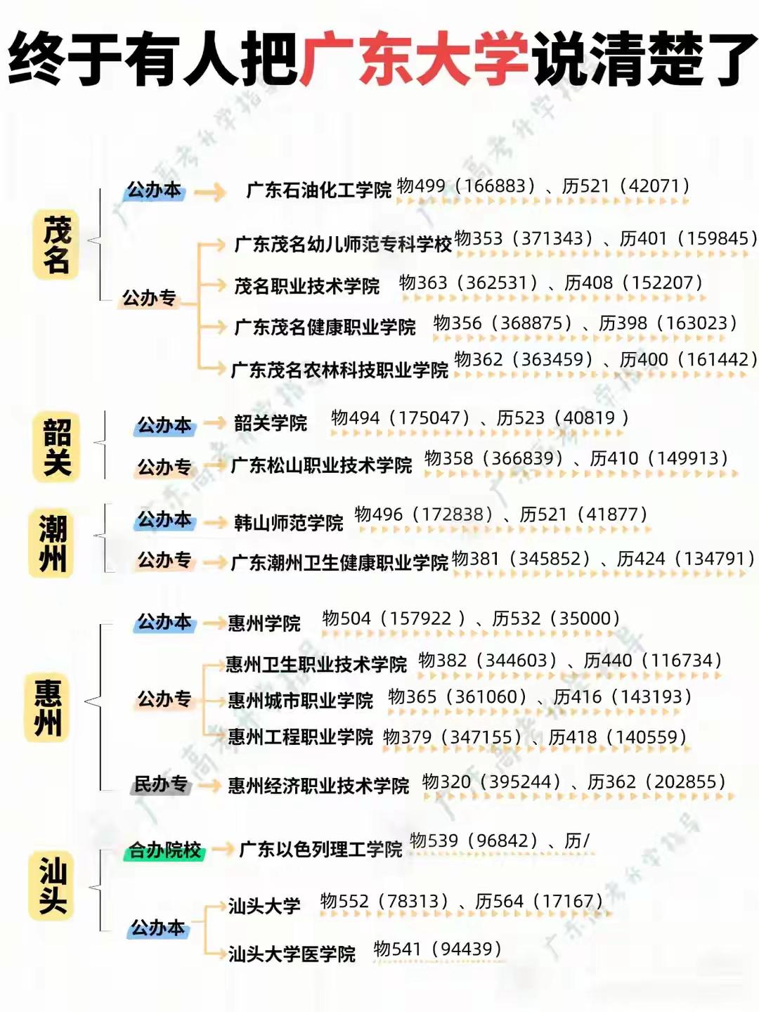 太哇塞了!在网上找了半天,终于找到,有人把整个广东省的各大院校招生录取最低分数和位次最低找到了,非常的完整!大家可以对照一下你的目标院校,看一下你的差距还有多少,至少心里有一个努力的目标在!