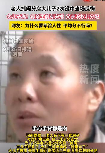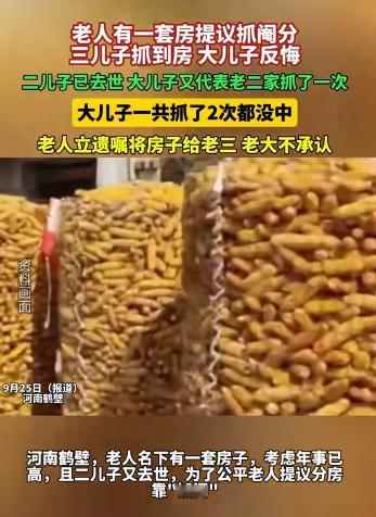 金钱面前,亲情一文不值!9月25日报道,河南,大爷的二儿子病逝,留下一套房子无人继承,老大和老三都想要,大爷便提出抓阄要房,谁抓中归谁。老大老三都没意见,没想到,最后老三抓中,老大却不认账了:抓阄这方法是胡来,房子是老二的,他生病时,我儿子照顾最多,房子理应留给我儿子!大爷气得做了个举动,老大傻眼了。 河南鹤壁的初秋午后,78岁的王大爷坐在三儿子家的堂屋,手里攥着一张皱巴巴的遗嘱,指腹反复摩挲着“百年后房产归三子”的字迹。 阳光透过窗棂落在纸上,却暖不透老人眼底的寒意。 就是这张纸,还有那套市值仅3万元的老房,让他和大儿子半年没说过一句话,亲兄弟成了陌路。 事情的根源,要从二十年前那笔1万元的出资说起。 二十年前,王大爷的三个儿子各凑1万元,把老宅翻新重建,约定房子归三兄弟共有。 老二一生未婚无儿无女,一直和父母同住,老伴去世后,更是和王大爷相依为命。 可两年前,老二因病突然离世,空荡荡的房子瞬间成了“烫手山芋”。 老大和老三都惦记着这处房产,素来和睦的家庭渐渐有了裂痕。 手心手背都是肉,我咋敢偏谁? 王大爷被夹在中间,夜里翻来覆去睡不着,最终想出了抓阄的法子。 他当着全家人的面,裁了三张纸条,只在其中一张上写了“得房”,让老大和老三抓。 老大连着抓了两次,纸条展开都是空白,最后老三一伸手就抓中了那张写着字的。 “我们抓到了!”三媳妇刘女士刚笑出声,老大的脸“唰”地沉了下来。 抓阄就是随口一说,连个书面手续都没有,不作数! 他猛地站起身,嗓门陡然拔高,这房子该归我儿子,老二生病那阵,都是我儿子端屎端尿! 刘女士当时就急了,抓阄前你咋不反对?说好谁中了就给谁,我们早备好2万块补偿你,现在咋不认账? 可老大根本不听,转身就走。 后来记者跟着《小莉帮忙》节目组上门采访,问他抓阄结果,他支支吾吾:“忘了,记不清了。” 记者追问“是不是你没中”,他又漏了嘴,没抓住…… 但转头又换了说法,这房是我妈留老二的,我俩都照顾过他,得平分! 王大爷坐在一旁,嘴唇哆嗦着说不出话。 他压根不知道“老伴留房给老二”的说法,更寒心的是,从那次争执后,大儿子就再也没登过他的门,电话不接,见面扭头就走。 倒是老三,每天下班都来给她端水递药,逢年过节更是把饭菜做好端过来。 眼见调解无望,王大爷偷偷去立了遗嘱,特意找了见证人,白纸黑字写清房子归老三。 当他把遗嘱摆在老大面前时,老大跳着脚反驳,你老糊涂了!今天说的话明天就忘,这遗嘱不算数! 可他既拿不出王大爷神志不清的医学证明,也没法否认房子是三兄弟共有的事实。 其实这样的事儿,在各地并不少见。 去年山东就有一起类似的纠纷,兄弟俩因父亲留下的老房争执。 弟弟按父亲生前约定拿到房产,愿意补偿哥哥5万元,可哥哥非要多分2万,最后闹上法庭。 法院判弟弟胜诉,可兄弟俩从此断绝往来,春节都不一起吃顿饭。 王大爷的遭遇里,最让人唏嘘的不是3万元的房产之争,而是亲情在利益面前的脆弱。 亲情从不是用来衡量利益的砝码,那些在病床前的照料、节日里的陪伴,才是比房产更珍贵的财富。 别让一套房子,毁掉一辈子的手足情;别让算计,磨掉了血浓于水的温度。 毕竟,家产可以再挣,亲人一旦走散,就再也找不回来了。 信息来源:热度新闻2025-09-27发布视频