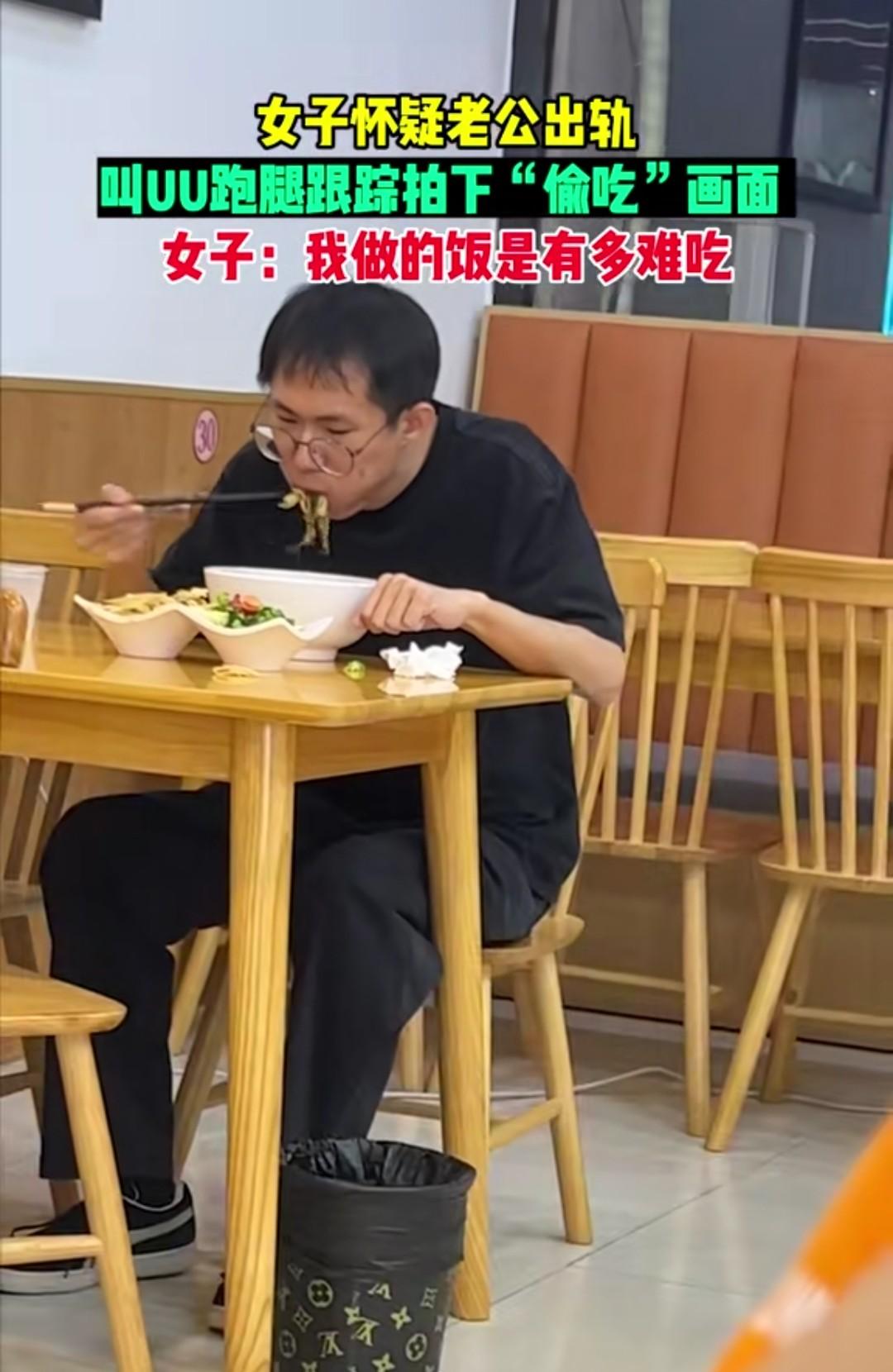 女子怀疑老公在外面“偷吃”,嗯,她老公果然在外面偷吃了,还吃的狼吞虎咽! 近日,有位女士怀疑她老公出轨了,在外面偷吃,于是叫了个跑腿,跟踪她老公偷拍。 没想到的是,她老公还真偷吃了,不过不是她想象中的偷吃,她老公在一家路边小餐馆吃的狼吞虎咽。 这位女士收到偷拍的视频,怀疑人生,自我检讨她做的饭是有多难吃才让她老公这副吃相的。 其实,这完全没必要搞的像谍战剧一样,多沟通就不会造成这样的误会了。还是说夫妻间开不了口?