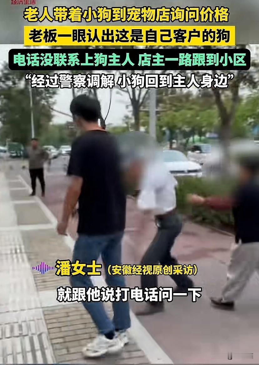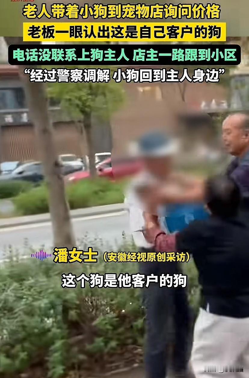 江苏南京,老人带着小狗到宠物店询问价格,老板一眼认出这是自己客户的狗。老板打电话联系狗主人时,老人急得一把抢走小狗转身就走,老板一路跟到老人小区。 潘女士和丈夫经营着一家宠物店,正在营业时间,有一位老人抱着一只博美犬进店询问价格。 老板看了一下老人怀里的博美犬,他瞬间认出这狗不是老人的,而是自己一个客户的狗。 于是老板找机会把博美犬抱了过来,并告诉老人自己打电话问一下。接着老板拿出手机给客户打电话,可是,打了好几次,那边的客户一直没有接电话。 老人看到老板一直打电话,他心里也有点慌,他急忙把博美犬抢了回去,说不卖了,抱着狗子就走出宠物店。 老板看到老人要把狗子抱回去,他也急得跟了出来。但他又不想惊动老人,他开着车慢慢的跟着老人到了小区,同时也不忘联系客户。 老板和狗主人在小区里拦下老人,并表明这狗子是自己的。可是老人不承认,他说狗子就是自己。在争执中,老人甚至拿起一块石头要打人。 老板看老人这样,觉得再沟通下去也没作用,于是报了警。后来在警察的调解下,狗主人买了一些东西送给老人,老人才愿意把博美犬交还。