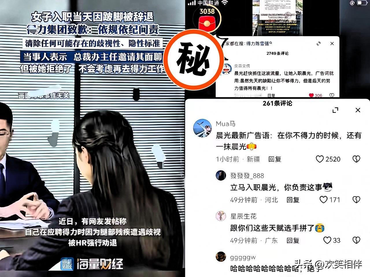不仅得力集团没想到, 可能连晨光文具也没想到, 得力的道歉非但没有得到网友们的 原谅,还把同行给托起来了。得力辞退跛脚员工,这不是自砸招牌嘛! 晨光可偷着乐,竞争对手犯这低级错,这泼天的富贵,简直白送啊!依我看,晨光只要稍微使点劲,就能稳稳接住! 得力这次真的踩了红线。那位通过三轮面试的求职者,5月13日到宁波总部报到当天,就因为走路跛脚被拒绝入职。人事甚至要求她发微信自称“因为不适应,主动离开”。这种操作让网友直呼太寒心。 CEO陈雪强亲自下场道歉。他说自己“非常震惊”,承认这与公司价值观完全不符。得力集团火速成立专项小组,总裁办主任直接飞往当事人所在地想要当面致歉。但当事人明确表示:不会再去得力工作了。 这已经不是得力第一次因歧视问题引发争议。有网友爆料,之前就因为听障问题被得力拒绝过。看来问题出在整个用人机制上。 晨光这次真是躺赢。这家文具行业的龙头企业在资本市场表现稳健,如今又迎来这样的机遇。网友已经开始在社交媒体上喊话:“支持晨光,至少他们不歧视残疾人!” 看看晨光近期的战略布局。他们正在加速推进IP赋能产品,构建多元化IP合作生态。九木杂物社门店数量已超830家,定位Z世代文创消费。这种年轻化、多元化的战略,与得力陈旧的用人观念形成鲜明对比。 法律人士指出得力可能涉嫌违法。根据《劳动合同法》,用工之日起即建立劳动关系。得力在面试期间未提出任何足部问题与岗位的不适配理由,却在入职时仅以员工足部残疾劝退员工,涉嫌不合法。 监管部门已经介入。宁波市宁海县劳动监察大队回应称已经在处理此事。这场风波已经从舆论场蔓延到了行政执法层面。 得力承诺全面整改。他们表示将依规依纪问责涉事人员,全面复盘人力资源管理全流程,清除任何可能存在的歧视性、隐性标准。但信任一旦失去,重建谈何容易。 晨光今年上半年营收超过108亿元,海外市场增长16%。如果能够把握这次机会,进一步巩固“国民文具品牌”的形象,市场份额有望进一步提升。 得力创建于1981年,本是行业老将。但在价值观成为核心竞争力的今天,一次用人失误就可能让数十年积累的品牌信誉受损。这个教训实在太深刻了。 消费者正在用脚投票。有网友直言:“买文具就是投赞成票,从今天起我只选晨光。”这种情绪正在社交平台上蔓延。 企业价值观从来不是空洞的口号。它体现在每一次招聘、每一个用人决策中。得力需要反思的不仅是个别HR的行为,更是整个企业的包容文化。 晨光目前面临一个绝佳的机会。如果他们能够借此推出更具包容性的招聘计划,明确反对任何形式的就业歧视,必将赢得更多消费者的心。 这场意外的商战给所有企业敲响警钟。在社交媒体时代,任何歧视行为都可能被放大,进而影响企业生存。价值观,真的能当饭吃。 各位读者你们怎么看?欢迎在评论区讨论。