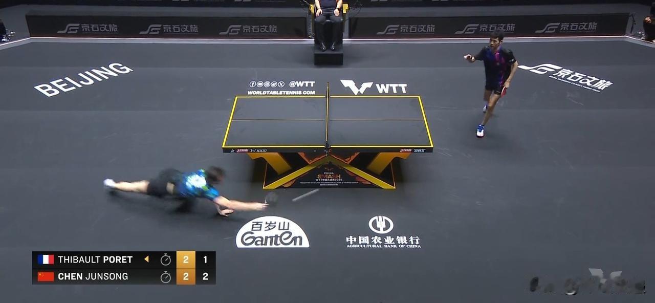 黑马之旅进行时!!!WTT北京站,陈俊菘继首轮3:2战胜日本选手张本智和后,今天晚上又以3:2力克法国新星泊雷特,闯入下一轮,继续黑马之旅。