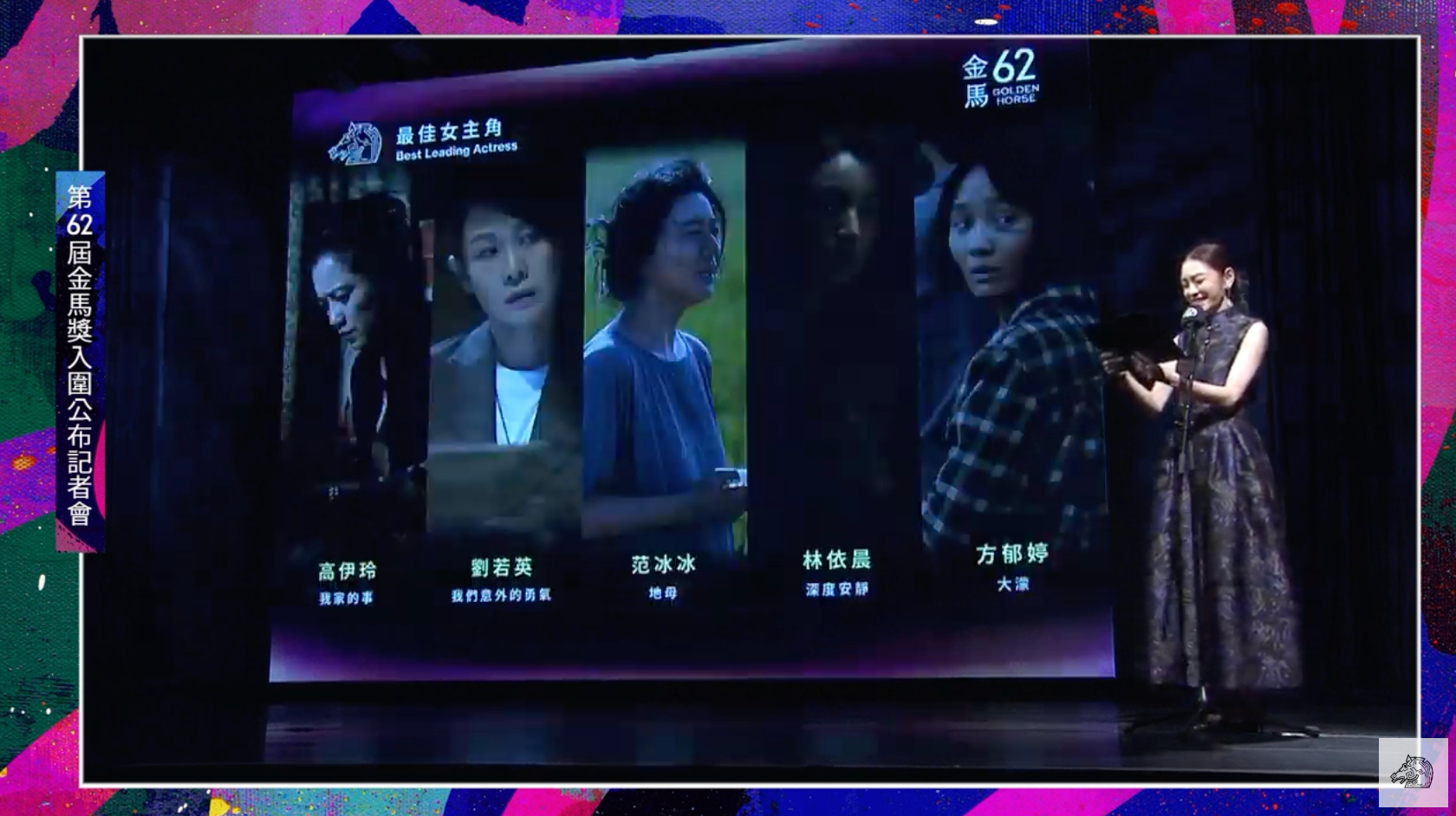 张震提名金马最佳男主角林依晨提名金马奖最佳女主角第62届金马奖公布本届提名名单,张震、张孝全等提名最佳男主角,林依晨、刘若英等提名最佳女主角,陈玉勋(《大濛》))、张吉安(《地母》)、李骏硕(《众生相》)、廖克发(《人生海海》)、曹仕翰(《南方时光)提名最佳导演,《大濛》《地母》《人生海海》《众生相》《左撇子女孩》入围最佳影片。