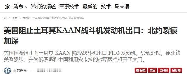 美国断供航空发动机,土耳其:我们找其他大国!土耳其外长哈坎·菲丹在新闻发布会上宣布了一则“噩耗”:美国国会已经拒绝提供土耳其“可汗”五代机所需的航空发动机。 这事儿说来挺闹心的,土耳其人好不容易搞出个国产五代机项目,结果关键的发动机卡在美国国会手里动不了。9月26号,土耳其外长哈坎·菲丹在纽约联合国大会边上跟记者们聊起这个,说美国国会已经把F110涡扇发动机的出口许可给冻住了,这些发动机本来是给KAAN战斗机准备的。 KAAN就是土耳其那款第五代隐身战斗机,号称是本土研发的宝贝疙瘩,但发动机这块儿还得靠美国通用电气公司提供。菲丹直言不讳,这事儿让项目推进有点儿磕绊,但土耳其不会就这么干等着,得找其他路子。 先捋捋背景,这不是头一回了。2019年土耳其买了俄罗斯的S-400防空系统,美国人一看不乐意,直接用CAATSA法案制裁,把土耳其从F-35联合项目里踢了出去。 那时候损失不小,土耳其预付的钱打了水漂,还得自己从头搞KAAN。结果呢,现在KAAN的发动机又卡壳了,还是老问题。美国国会觉得土耳其跟俄罗斯走太近,安全风险大,就不松口。 说白了,这就是地缘政治的锅,北约内部的土耳其总爱搞点儿独立性,美国人自然得敲打敲打。 KAAN项目启动于2010年,土耳其航空工业公司TAI牵头,目标是到2030年量产。 第一架原型机去年2月首飞,表现还行,隐身设计、传感器融合啥的都挺先进。但发动机一直是软肋,F110这玩意儿推力大,成熟可靠,土耳其自己还没法完全搞定。 按照原计划,土耳其跟美国签了合同,要买至少40台F110-GE-129发动机,用来装在首批KAAN上。 可现在国会一卡,生产线上就空荡荡的,原型机测试得用临时方案凑合。 这事儿对土耳其国防工业打击不小。KAAN不光是飞机,还牵扯一大堆本土化目标。土耳其想借这个项目拉动经济,培养人才,减少对国外依赖。 但现实骨感,飞机上很多子系统还得进口:航电系统有英国BAE系统的影子,雷达是土耳其自己号称的,但还在实验室阶段。 发动机一断供,整个链条就乱套。土耳其国防部长耶米尔去年还吹牛,说KAAN会让土耳其空军现代化,但现在看来,进度得往后拖。 更烦的是,这会影响土耳其在北约的地位,大家都盯着看土耳其会不会更往俄罗斯那边靠。 菲丹的表态挺硬气,他说土耳其已经在联系其他国家帮忙,提供发动机或者技术支持。 能干这活儿的国家不多,美国、英国、法国、俄罗斯、乌克兰这些有实力的,但换发动机可不是小事儿。得改进气道、尾喷管,还得一大堆地面和飞行测试,成本高,时间长。 土耳其自己也在推TF35000国产发动机,TEI公司负责,目标推力35千牛,辅助动力单元APU60也一起搞。 但这东西还在开发中,2026年才能地面测试,离实战用还远着呢。 国内也有分歧。菲丹在纽约说许可卡在国会,生产没法启动。 可国防部那边儿不服,官员们放话项目按计划走,不会因为一个发动机耽误大局。 这听着像打嘴仗,但也反映出土耳其高层想稳住军心。埃尔多安政府这些年军工投资大,出口也猛,KAAN要是黄了,面子丢不起。 从国际看,这事儿加剧了美土矛盾。土耳其在叙利亚、希腊问题上跟美国不对付,现在发动机一卡,更像是在施压。 北约峰会时大家还得坐一块儿开会,但私下里土耳其抱怨不断。俄罗斯那边儿乐见其成,说不定会推AL-41F发动机,但土耳其学乖了,不想再被制裁。 英国和意大利有合作意向,BAE系统已经在帮设计,但发动机他们也没多余的。 长远说,土耳其得加速本土化。TEI的TF6000小推力发动机已经成熟,用在Hürjet教练机上,现在放大到TF35000,得砸钱砸时间。 预算上,KAAN项目总投资10亿美元,发动机占大头,现在多出一笔研发费,纳税人得捏鼻子认了。出口潜力也受影响,印尼、马来西亚这些潜在买家看着呢,发动机不稳,谁敢下单。