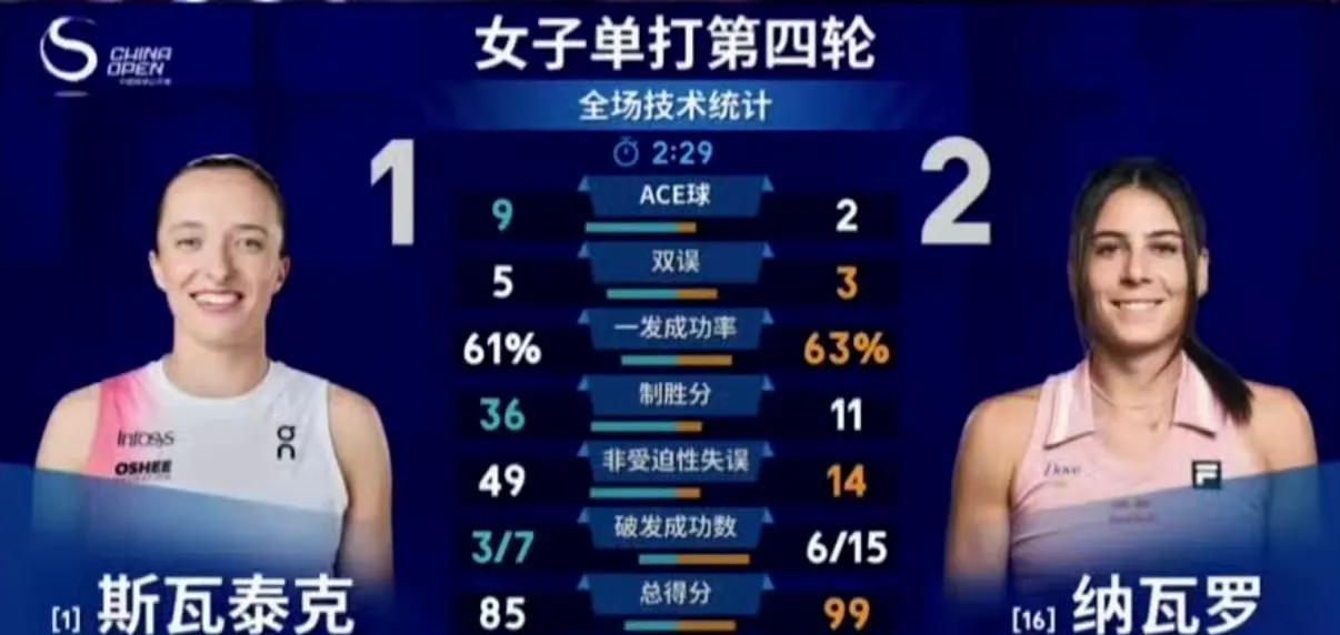 不可思议!世界第二在中网赛场吞蛋!今年第三次吞蛋! 斯瓦泰克在中网第四轮止步,决