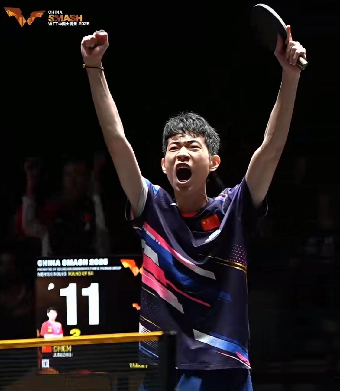 刘国梁、王励勤现场观战“黑马”陈俊崧比赛。 10月1日晚,WTT中国大满贯比赛中,中国乒协的两任掌门人刘国梁、王励勤被拍到来到现场观看陈俊崧对阵泊雷特的比赛。要说起来世界排名113位的小将陈俊崧可以说是本次比赛中一个黑马,之前在与乒坛名将世界排名第四张本智和的比赛中,决胜局5比9落后的绝境下连追6分取得胜利,从而一战成名令人关注。要知道这次张本智和本来是带着要挑战王楚钦的目标而来的,没想到的是首战即遭失利,弄得他只得找借口说是被现场观众的声音干扰了。好在,今晚的比赛中陈俊崧也是不负众望,再次在决胜局实现逆转以3比2战胜世界排名34的泊雷特,晋级16强。可以看到刘国梁、王励勤在观看比赛中频繁点头,能够在两位乒坛大咖的眼前再度爆冷,对于陈俊崧而言可谓是风光无限,期待他一黑到底,取得佳绩。