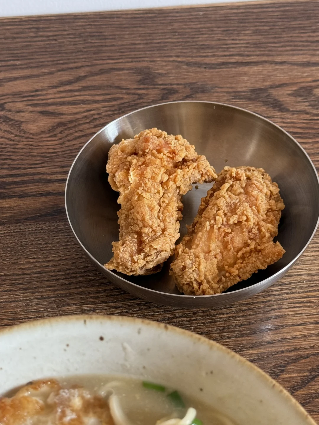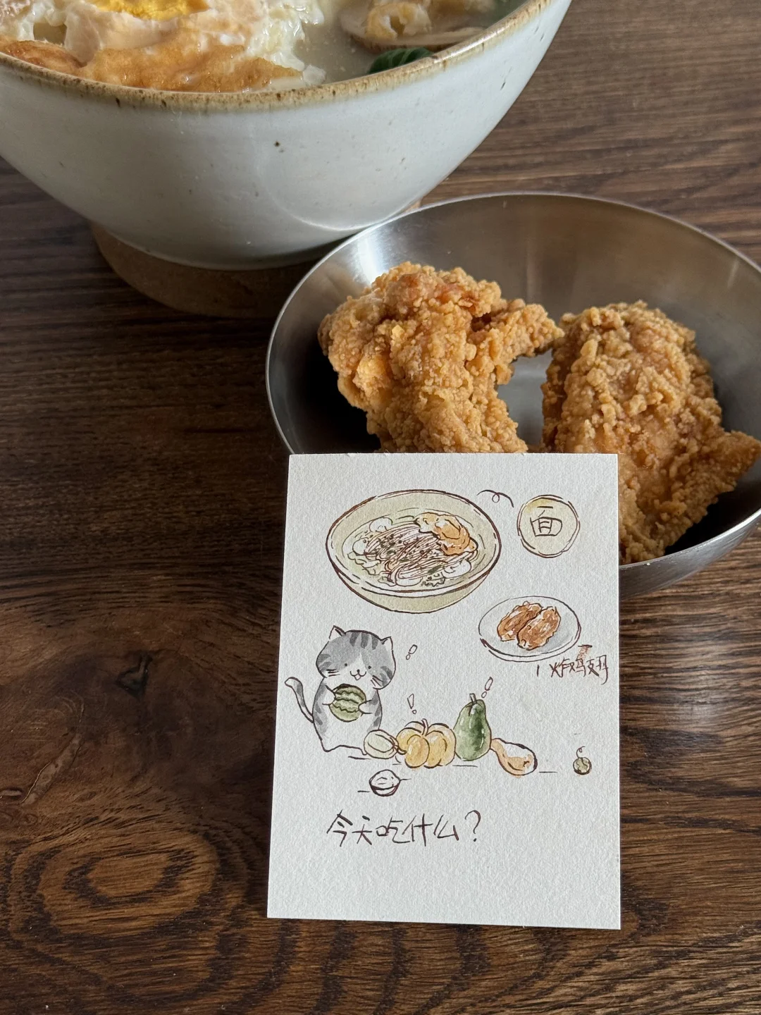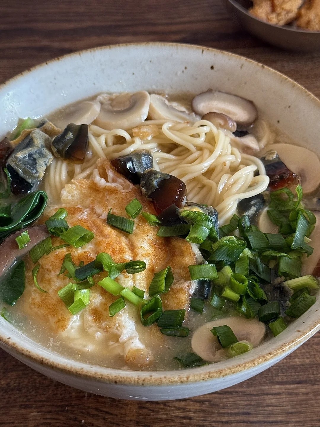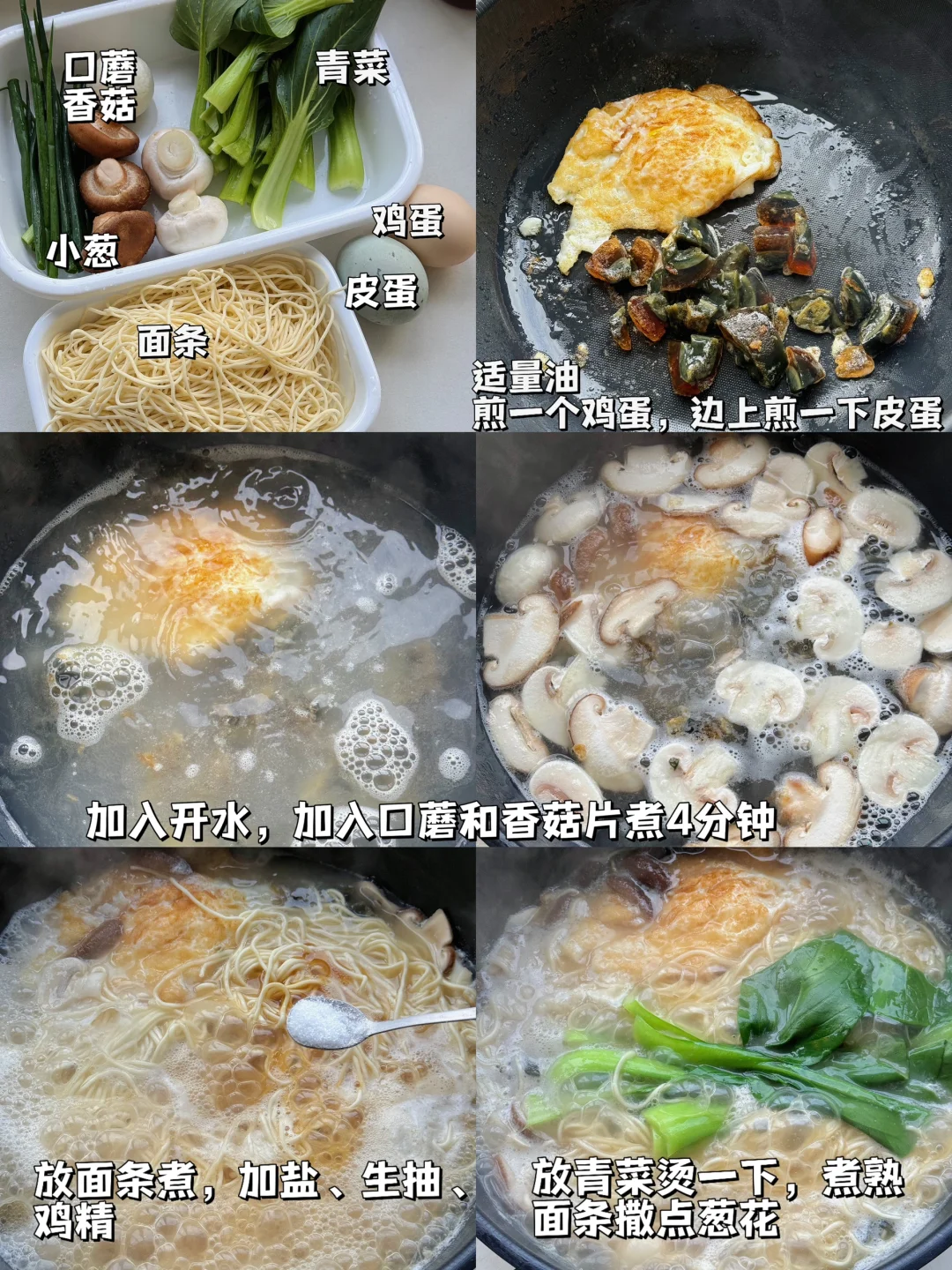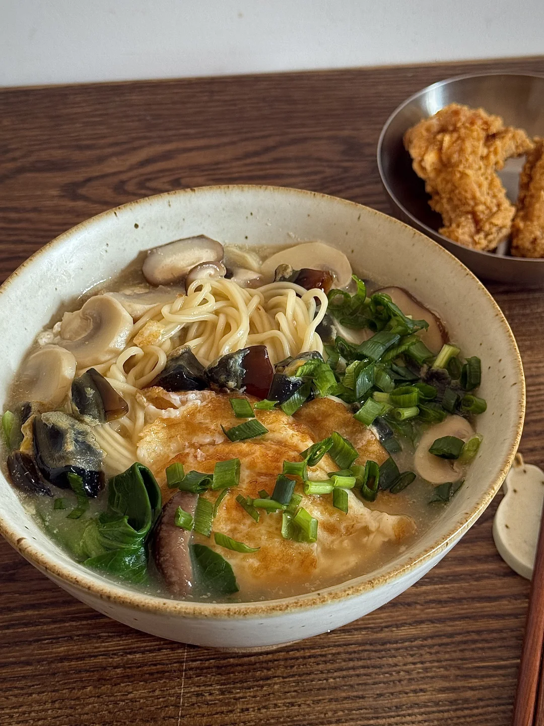 今日午餐:双蛋蘑菇面,炸鸡翅