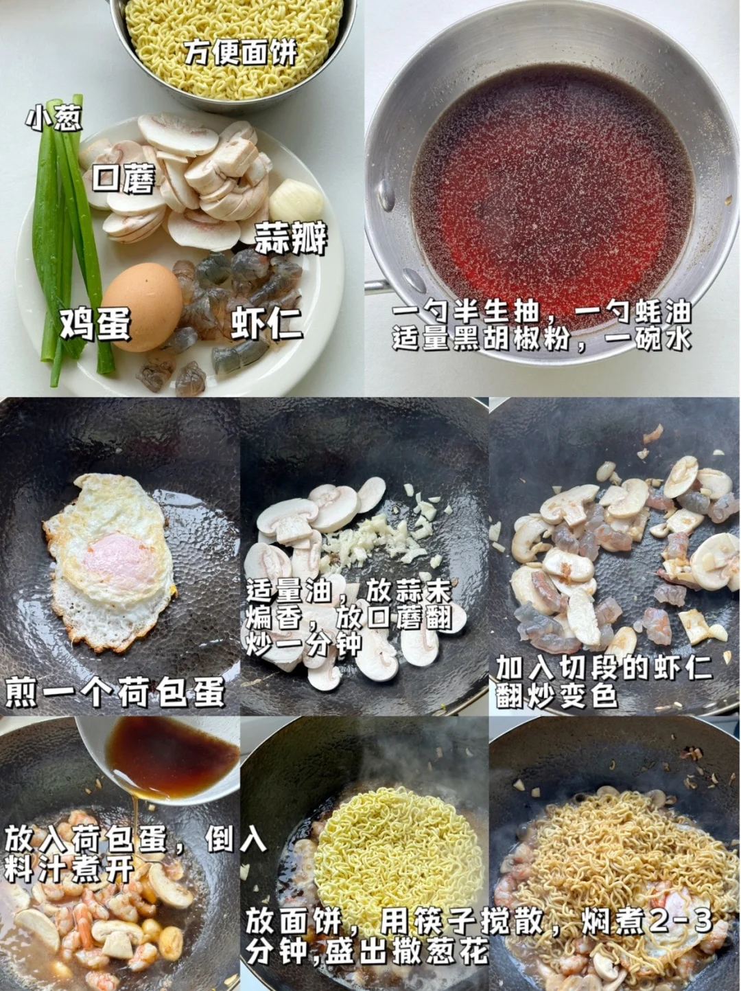 做法也简单哦!主要是水不要多也不要少,一小碗的样子,方便面吸水很强,烧的的时候要注意锅不要烧干,太干可以再加点水!