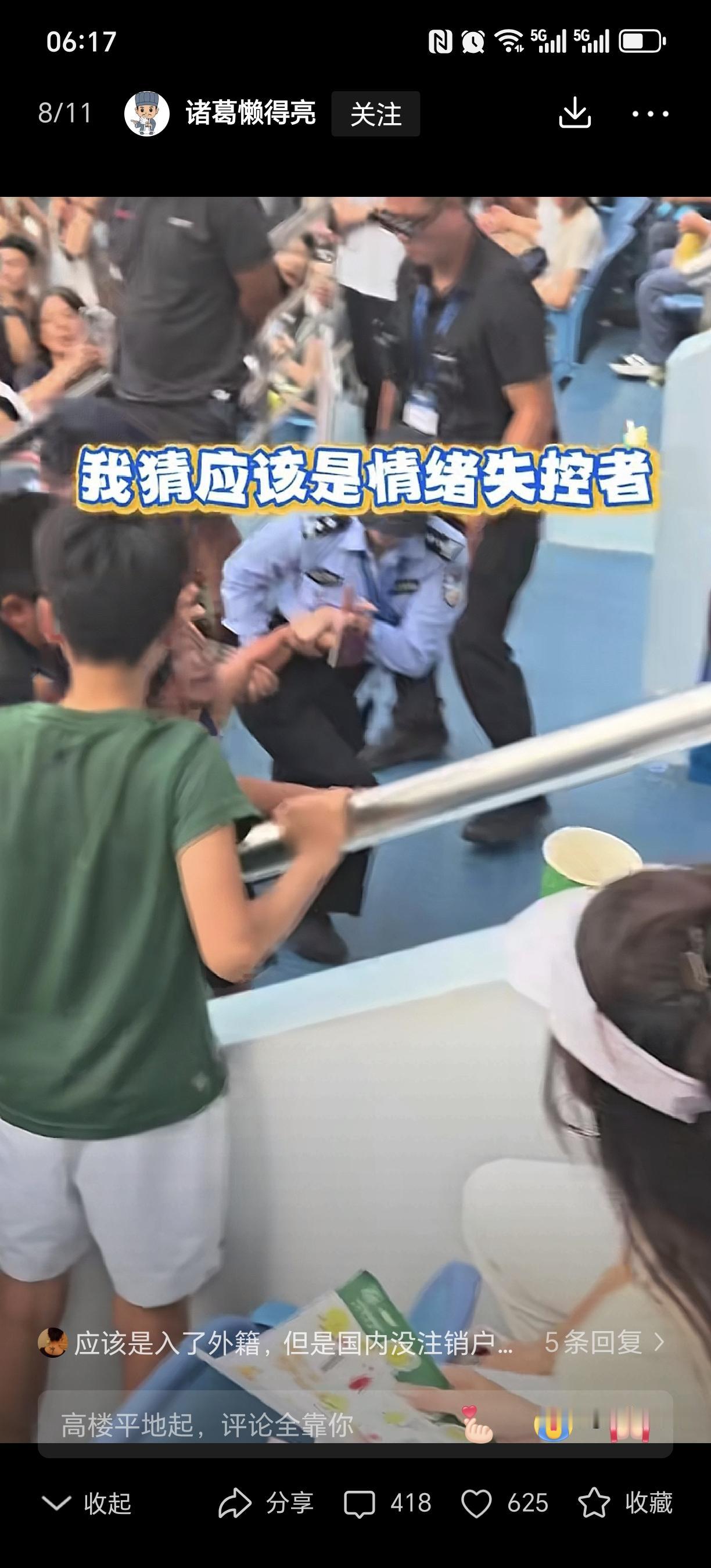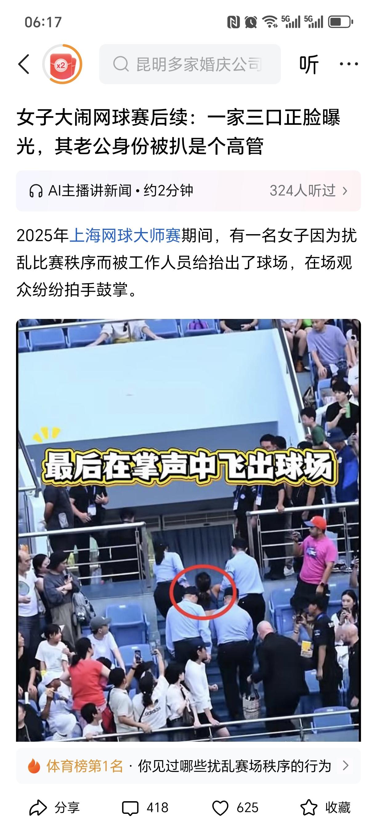 上海网球赛女子大闹赛场被抬出场外 在2025年上海网球大师赛的紧张赛点上,一场突如其来的闹剧打破了现场的专注氛围。一名据称是外籍的女子,在众目睽睽之下,以一系列极其浮夸、不合时宜的动作肆意扰乱赛场秩序。她完全无视工作人员的反复劝阻,情绪激动,甚至无暇顾及随行在旁、已被吓得不知所措的年幼孩子。 她的行为严重干扰了球员的专注,迫使主裁判不得不宣布比赛暂停。在多次警告无效后,现场安保人员果断采取行动,最终合力将这位仍在叫嚷的女子抬离球场。当她的身影消失在球员通道的入口时,全场顿时爆发出如释重负的、雷鸣般的掌声。 这掌声,并非仅仅是针对一个人的离场,更是一种集体态度的鲜明表达:它是对赛事秩序得以严肃维护的肯定,是对体育精神与观赛礼仪的坚定捍卫。在那一刻,公众用掌声凝聚了一个清晰的共识——无论来自何方,在文明的公共空间里,尊重规则与顾及他人是不可逾越的底线。
