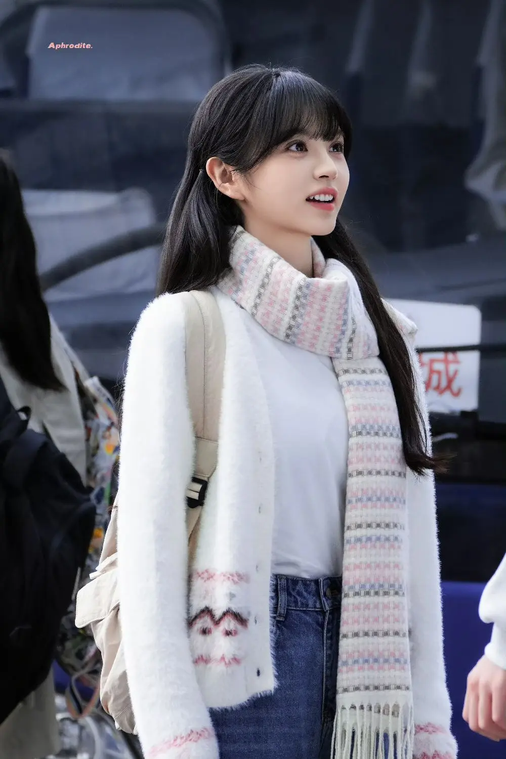 当年刘亦菲这个水蜜桃造型相当出圈,和一群人拍照确实很突出。