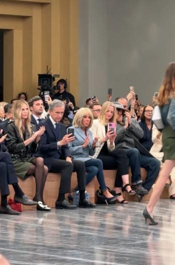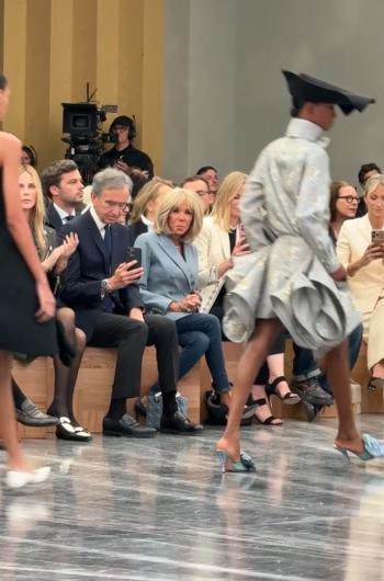 法国第一夫人在巴黎迪奥时装周看秀,翘着二郎腿漫画腿超抢镜 10月1日,法国第一夫人布里吉特在巴黎一个时装周看秀,现场来了不少明星和名人,当时法国夫人还和LV总监坐在一起。画面中法国第一夫人造型非常时尚,只见她穿一件淡蓝色的休闲西装,搭配紧身牛仔裤,还拎着一个淡蓝色的奢侈品包包。值得一提的是法国夫人在看秀的时候还翘着二郎腿。虽然她已经七十多岁了,可是身材苗条状态很好,尤其是她的漫画腿又美又细,估计这个年龄的老人像法国夫人的很少了。可以想象法国夫人年轻时候多么漂亮,也难怪马克龙上学的时候对她如此痴迷!