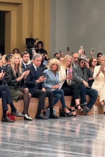 法国第一夫人在巴黎迪奥时装周看秀,翘着二郎腿漫画腿超抢镜 10月1日,法国第一夫