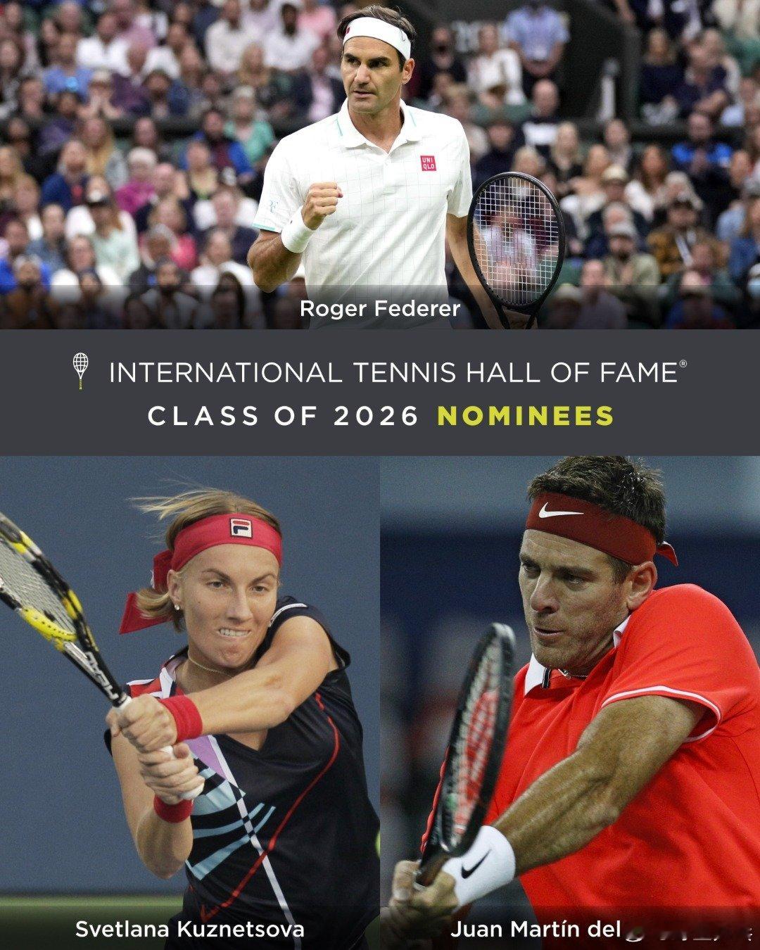 国际网球名人堂官宣:费德勒、德尔波特罗、库兹涅佐娃入选2026提名名单