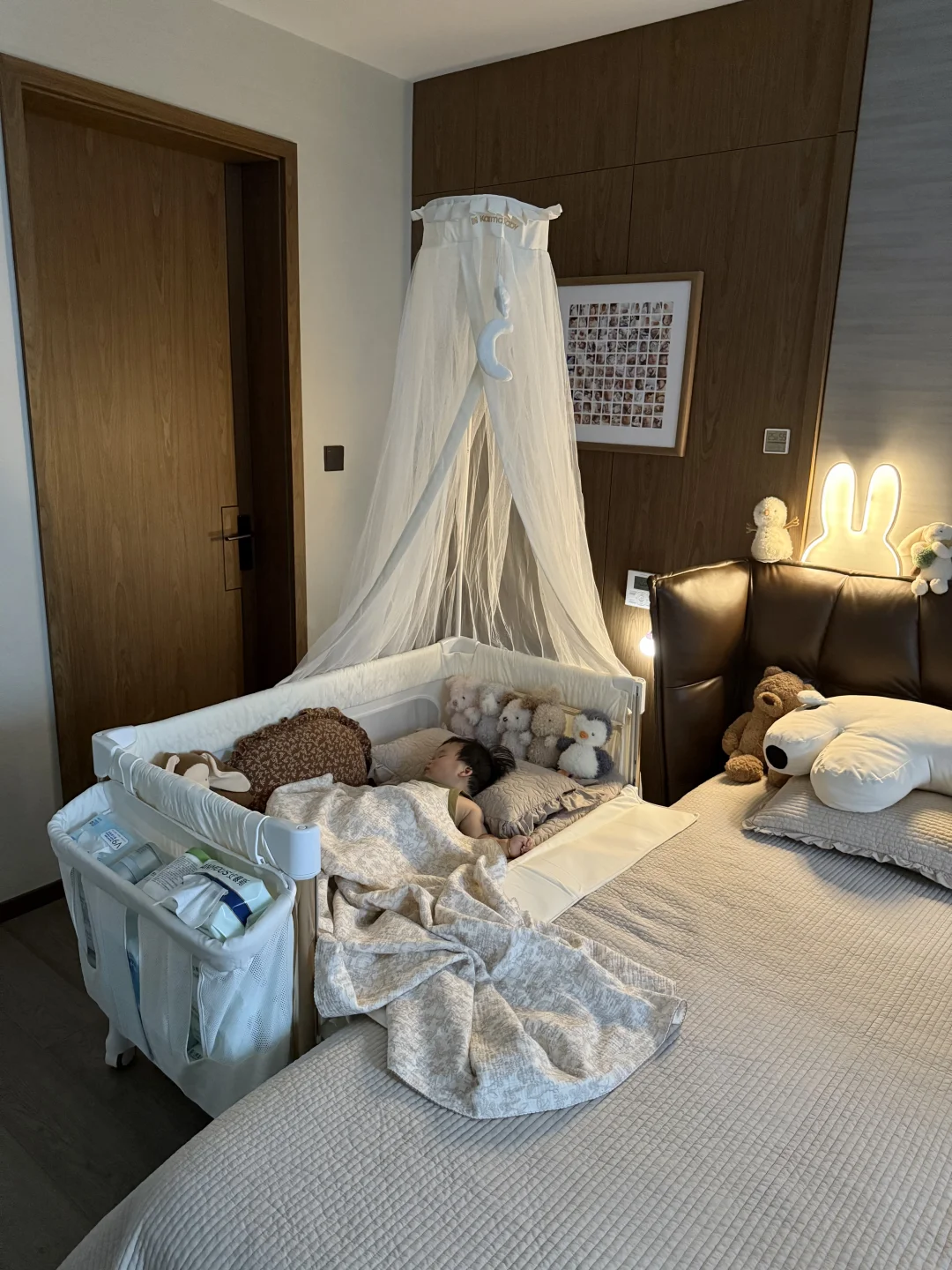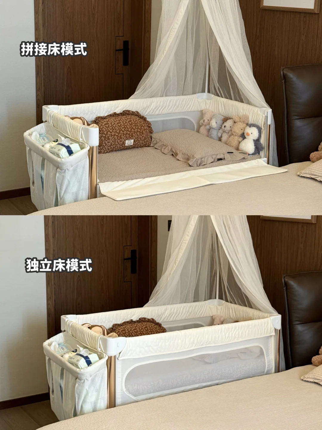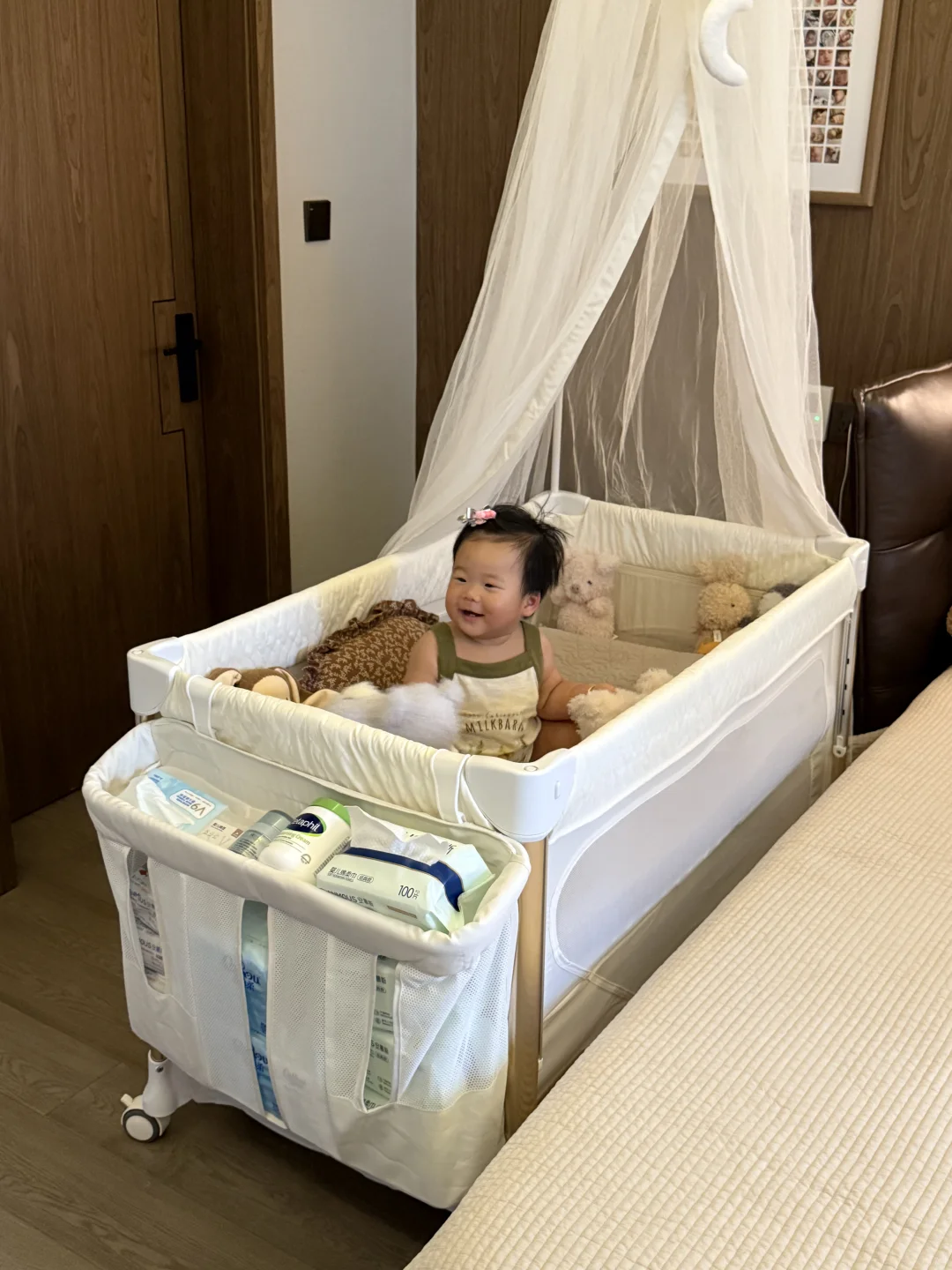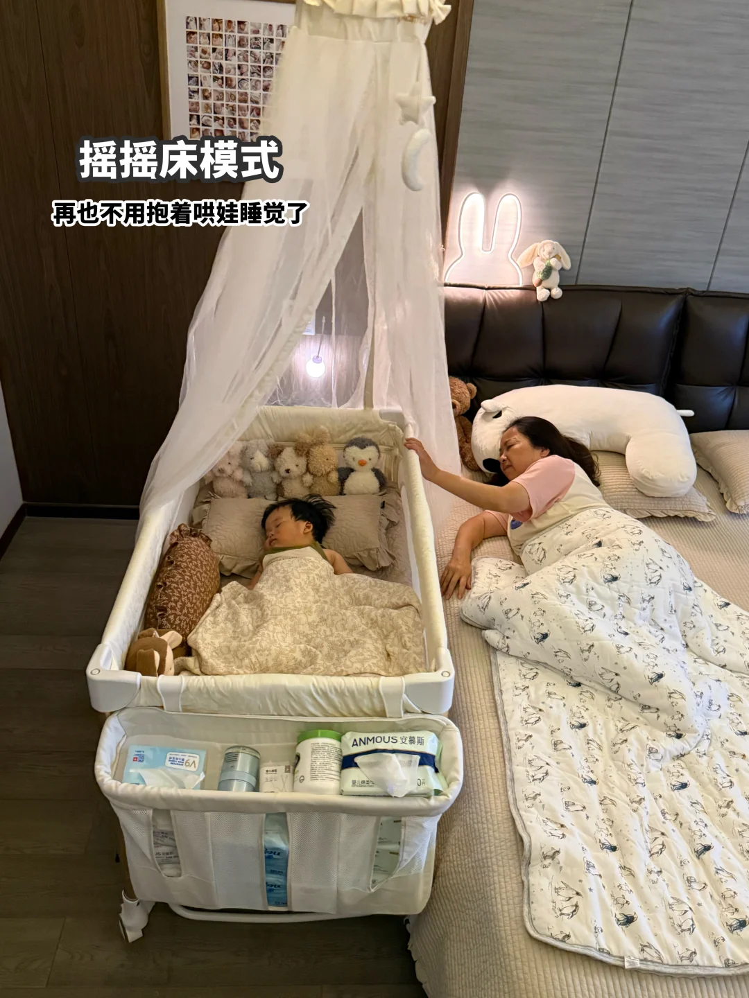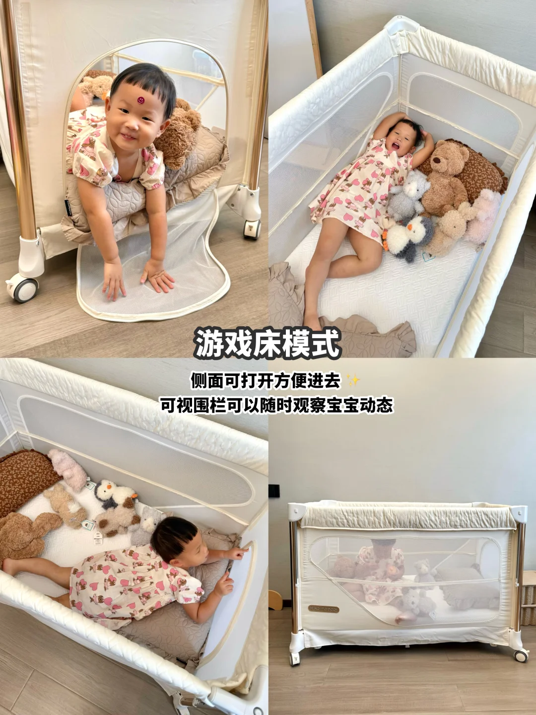 真的啥都好就是我一胎的时候没有🫠 一床N用不说还能从小用到大 装上摇杆 秒变婴儿摇篮 哄娃睡觉太好使了!!秒睡!!👏 自带尿布台敲实用!拯救老母亲的腰👩 收起来小小一个!完全不占地~ 侧边延伸板 能跟大床无缝隙拼接 等宝宝大了切换成游戏床模式 不同年龄需求都能满足~~ 一床=独立床+拼接床+游戏床+旅行床 有娃家庭早买早享福啊!!