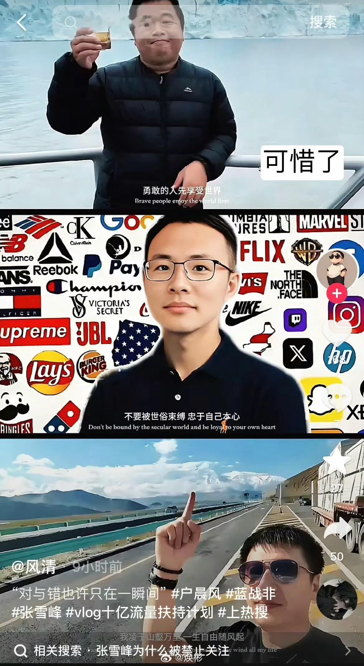 张雪峰和户晨风被全网ban的官方定性有了,等一个蓝战非被ban的官方定性!