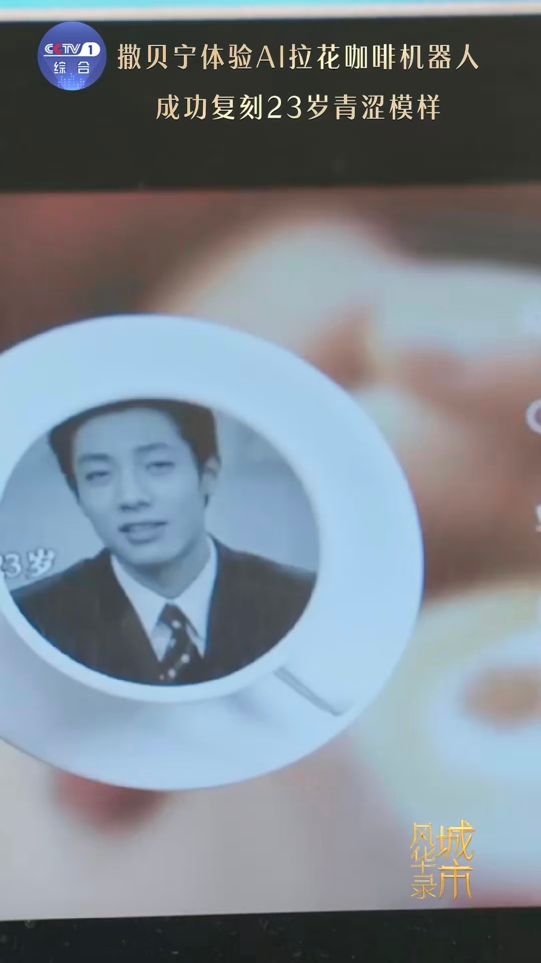 AI咖啡拉花23岁小小撒 深圳的咖啡店玩出花了!AI拉花机器人两分钟复刻撒贝宁旧照,连本尊都惊呼“无从下嘴”。所以问题来了:你会喝掉自己的脸吗? ​​​