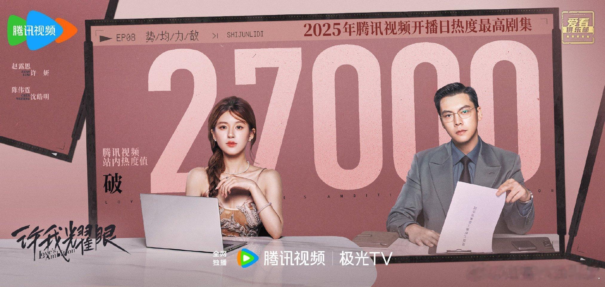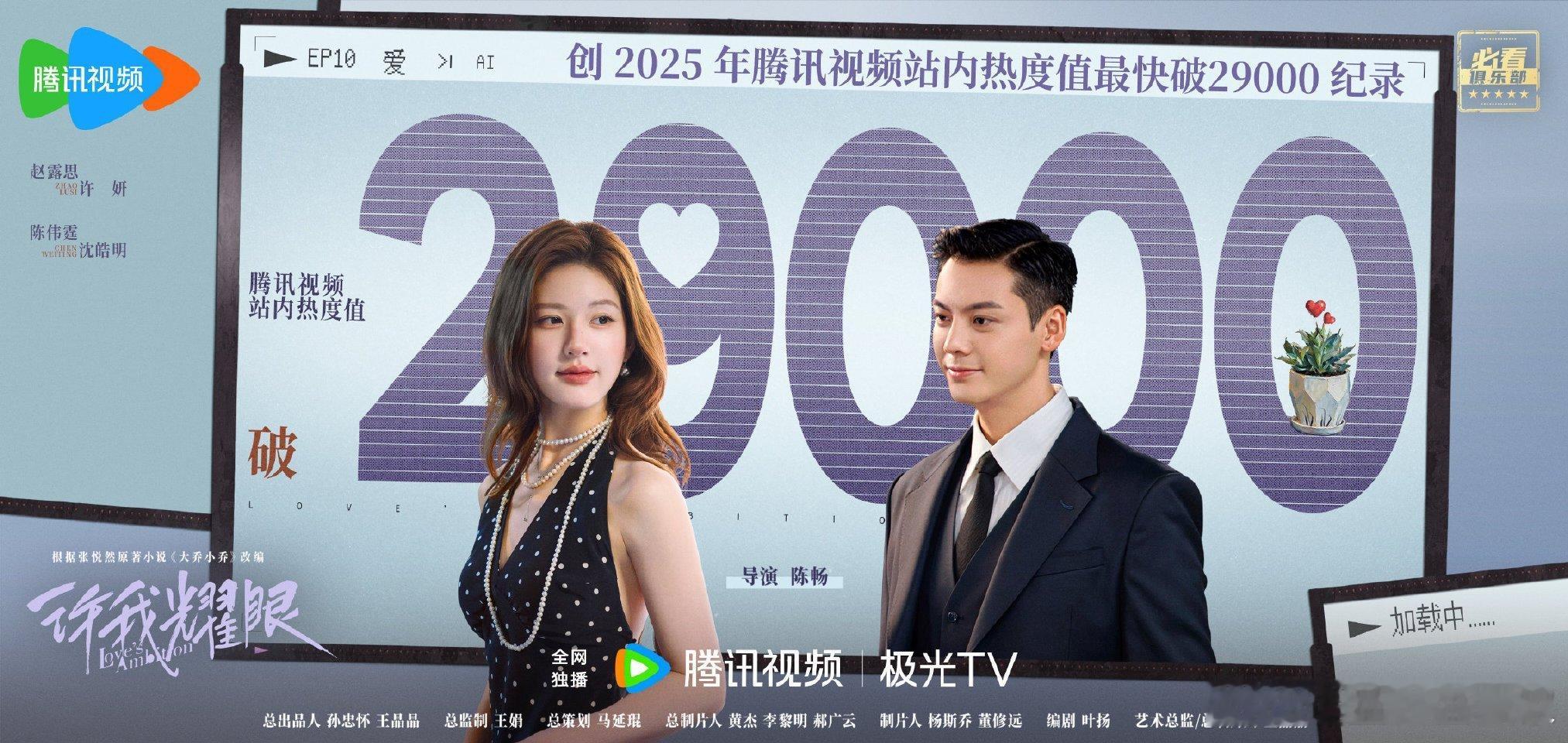 许我耀眼四天破三万,进入爆款俱乐部,2025年最快破三万的剧,鹅最快破三万的都市剧 恭喜赵露思