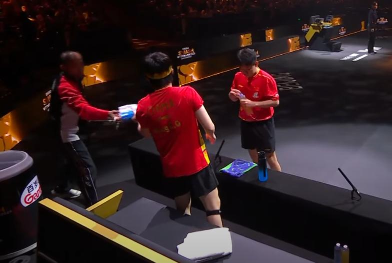 不好!王楚钦好像感冒了! 今天大头/小石头的双头组合, 第一个出场! 大头还没打呢, 就问教练要了一个纸抽, 好像流鼻涕了! 最近北京温度变化大, 很容易感冒, 运动员打完比赛, 浑身出透汗, 这时候必须注意。 希望大头没事吧, 必定一天三赛, 对体能要求很高。