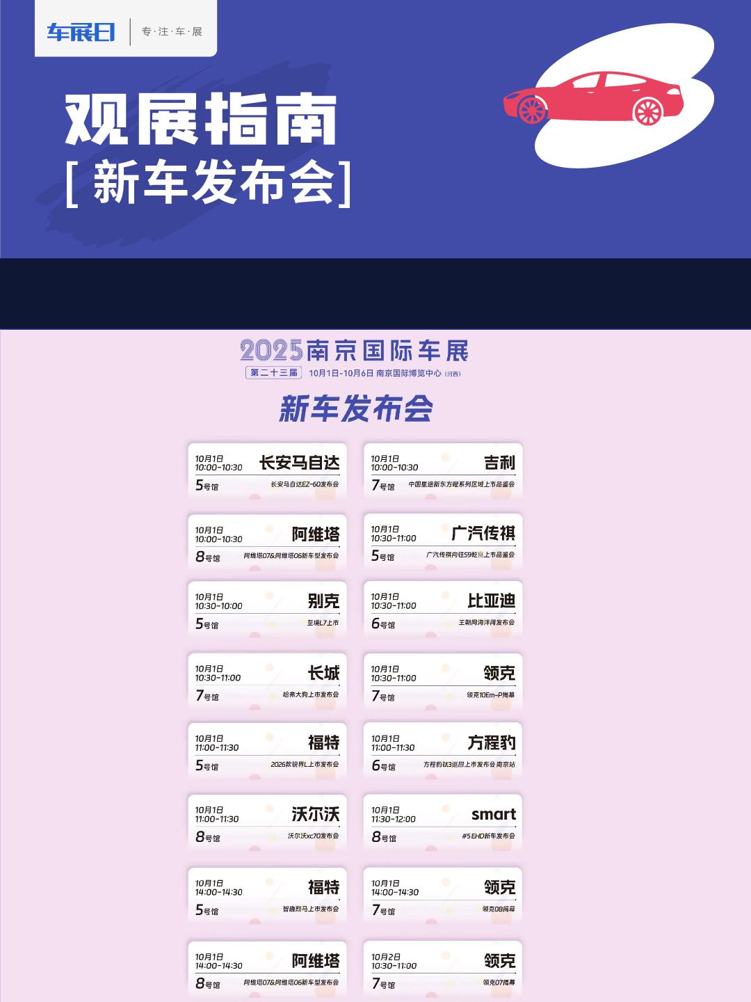 2025十一南京国际车展暨房车展观展指南发布,2025(第二十三届)南京国际车展暨南京度假房车展(以下简称:南京国际车展)10月1日至6日在南京国际博览中心盛大举行,其中南京房车展开展到10月3日。此次十一南京国际车展现场58个参展品牌,近千台展车,总规模近8万平方米,覆盖5个室内展馆和室外展区。来南京车展现场,一起感受车展的魅力!【来自懂车帝车友圈】