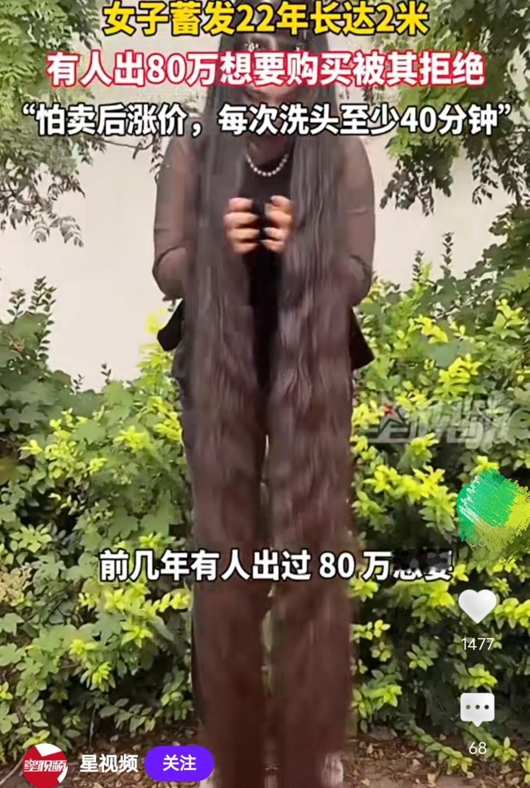 女子蓄发22年长达2米,有人出80万想要购买被其拒绝:怕卖后涨价,每次洗头至少40分钟。 在相关媒体看到的这个消息,一个河北的女子,从15岁开始留长发,一直到37岁都没有剪过,如今长达2米,每次洗头都要很久,在她结婚的时候说的是就有人出2万买她的头发她没卖,现在已经蓄了22年,说的是有人出80万,她还是不卖,她说害怕卖了后价格再涨,意思想更多。 很多网友就不淡定了,说:从今往后我也留长发了,原来留长发可以致富。还有的调侃说,一定不要卖,等到变成一头白发会更值钱,还有的说她就是在炒作,怎么可能这么荒谬的出价,怕不是别人的玩笑她当真了吧。 说什么的都有,我觉得也不可思议。22年不剪,留到这么久,每天花这么长时间弄头发,不得浪费很多干正事的时间?而且这80万的出价也太荒唐了,正常思维的哪个会当这个冤大头?这么长用在那里?就算非得需要这么长的,理发店接长发的项目都快普及了,用得着花天价去买?所以可信不可信大家自己掂量吧!