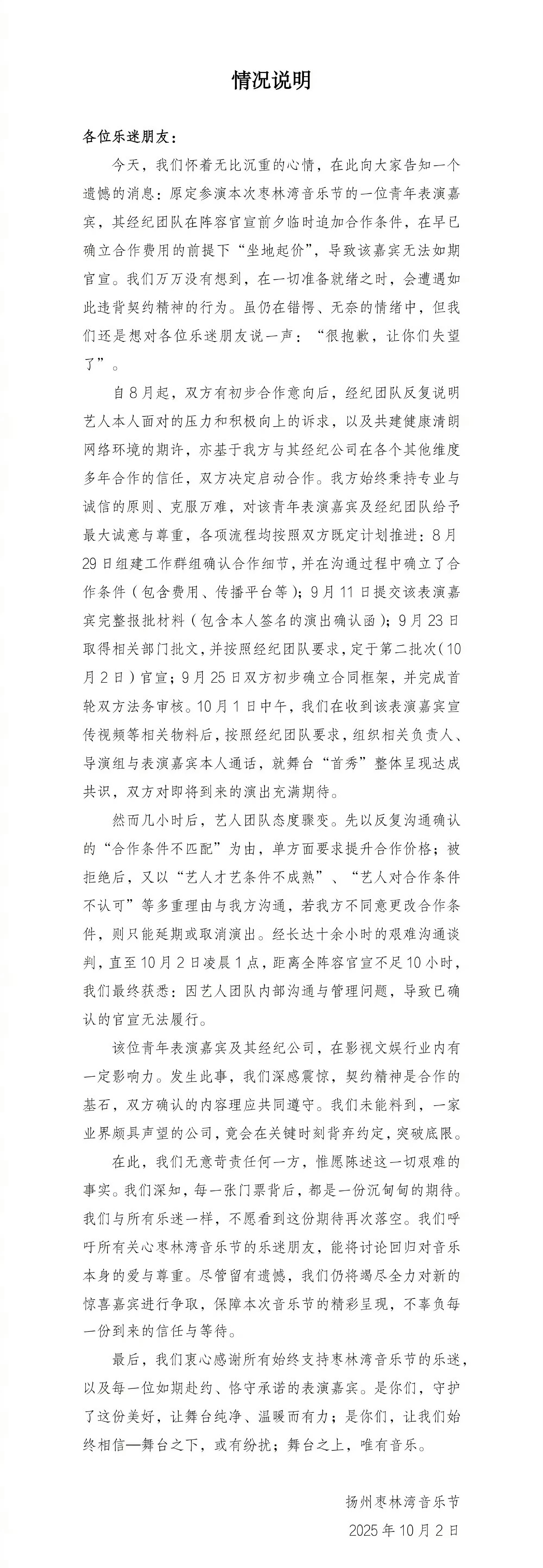 有艺人音乐节坐地起价被主办方给挂了,谁啊?​​​