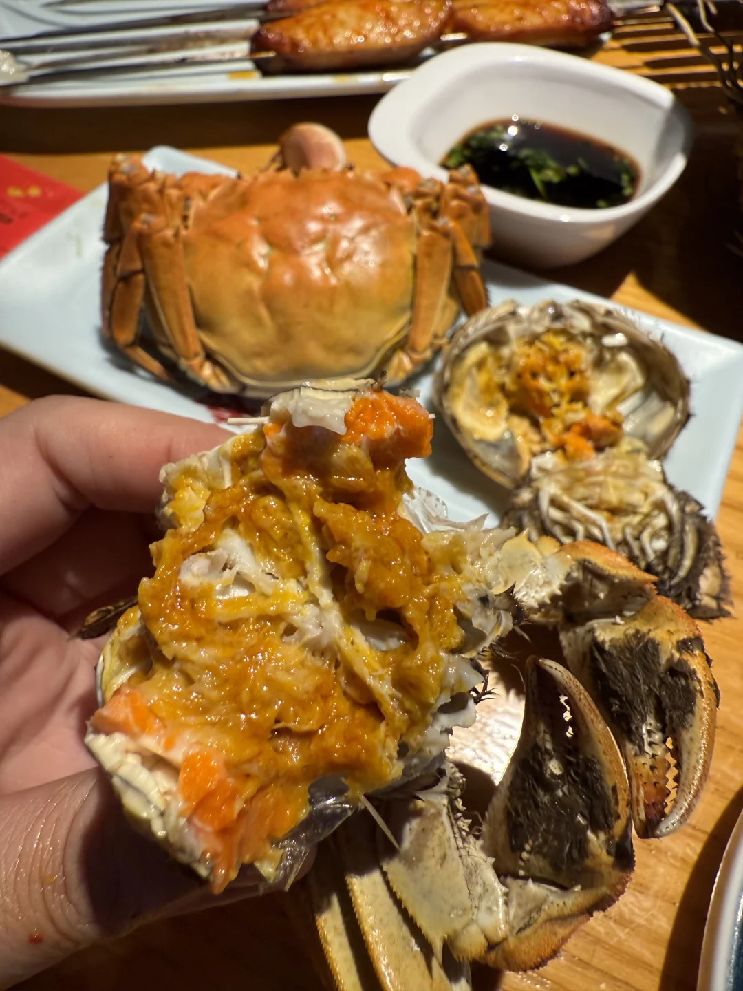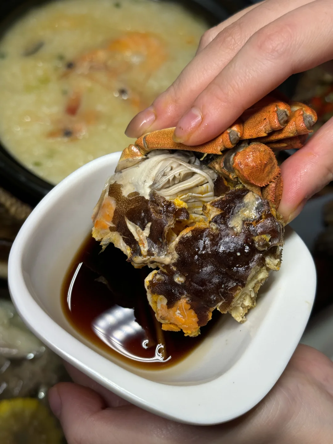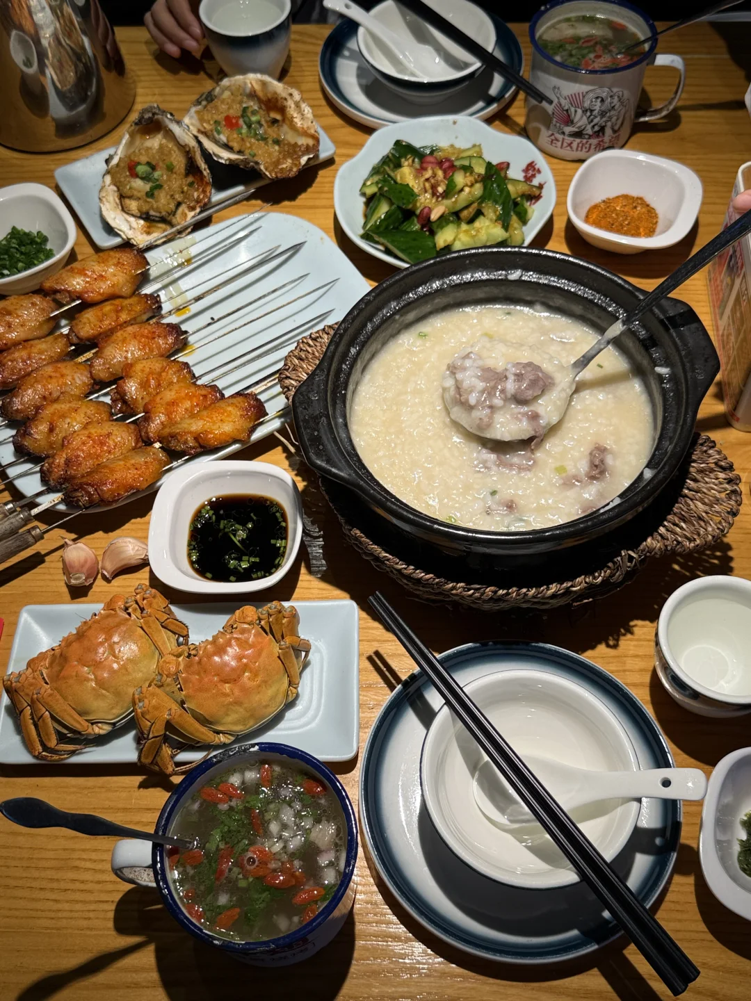 国庆假期来了,朋友来宁波玩! 大晚上到,还没吃饭,必须来吃个夜宵! 生蚝、烤鸡翅、海鲜粥没得说,必点不踩雷! 入秋了,新上了羊肉系列和大闸蟹很应景! 枸杞羊肉汤选的是宁夏滩羊,好羊肉清水炖,很嫩不膻,秋天补一补! 大闸蟹现在的膏真的好肥,油咪咪!